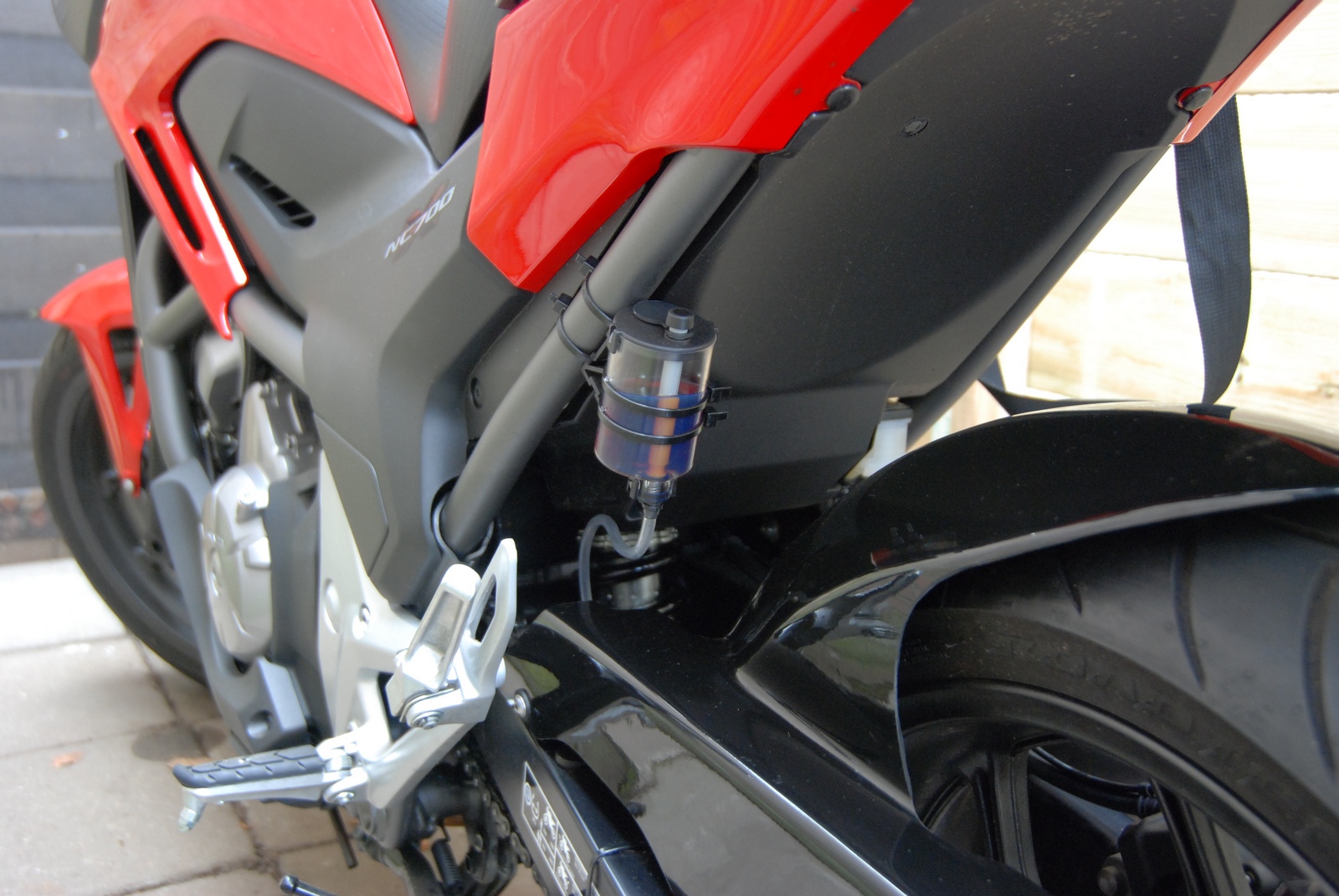 Ich bin gefahren und nach 2 Stunden die Kette kontrolliert; die ganze Kette gut gefettet, kein Öl auf das Hinterrad. Man muss nicht zuviel Öl auf die Kette laufen lassen; 1x drücken ist genug. Ich denke 1x drücken nach jede Tankstop/ 300km.