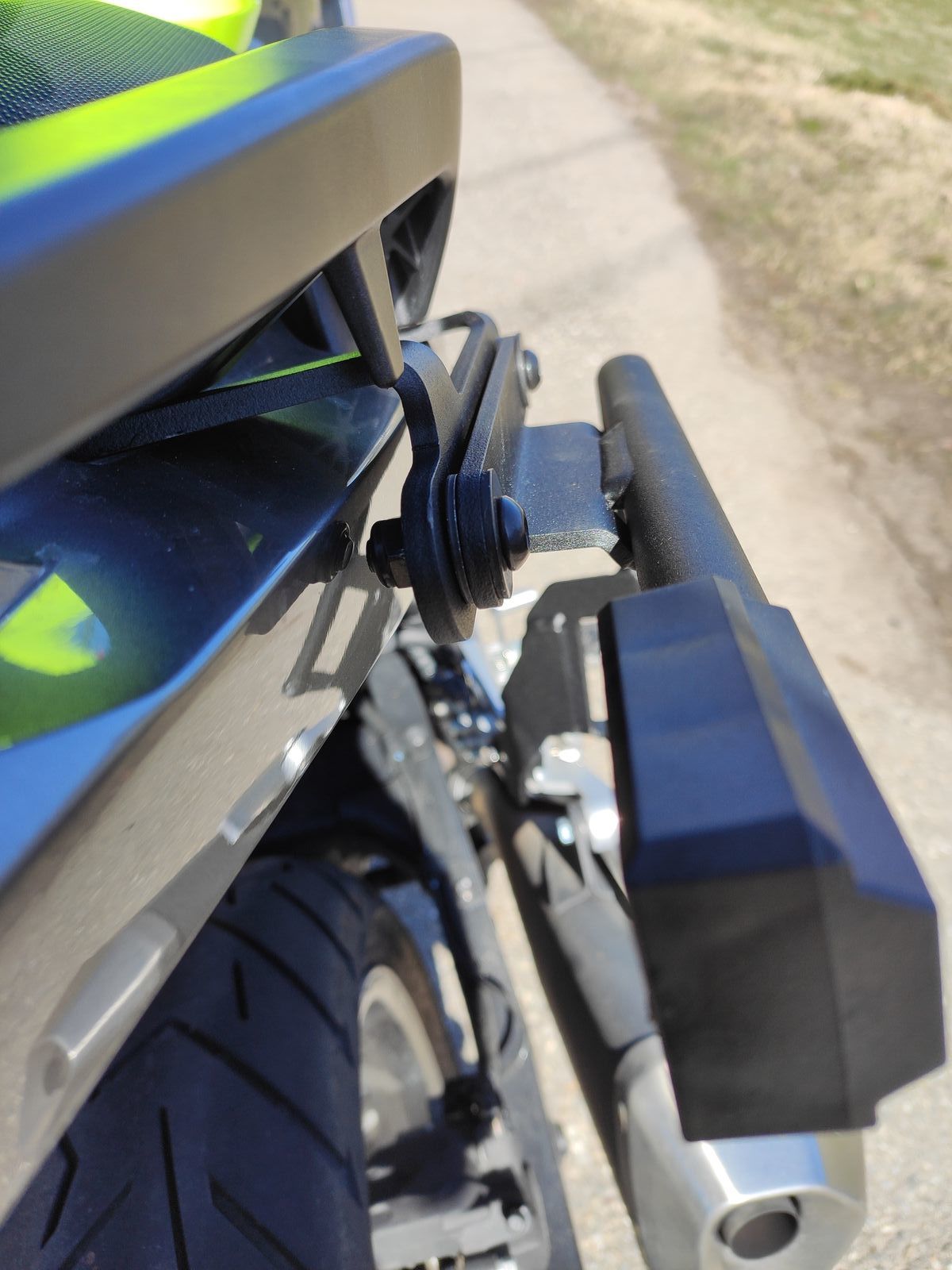 #40 Hi, ich glaube die meinen die Reihenfolge bei der Montage der Seitenträger und dem Gepäckträger am Halter. Hier mal ein Bild von meinem Halter von der Seite: