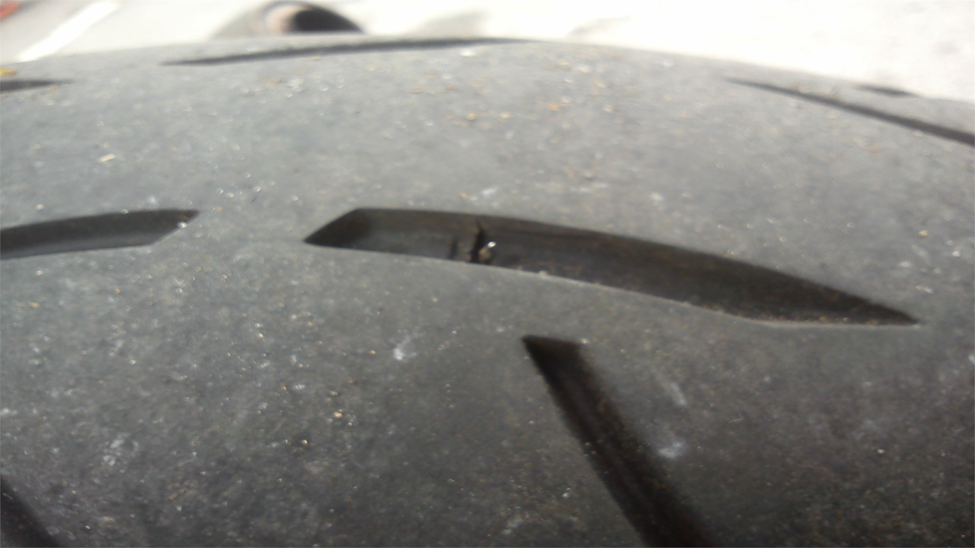 Hier ein Bild nach 250km mit mini Nagel drinn (hat sich zum Glück irgendwie seitlich in die Profilrille gebohrt)