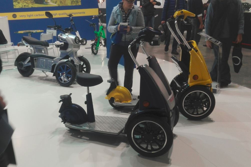 #27 Bei den Exoten erwähnenswert wären ein Racer von Mondial, eine New Katana Studie (nicht von Suzuki selbst), eine sehr schöne Thruxton von Royal Enfield (Continental GT), und ein zu einer Enduro umgebauter X-ADV. Eigentlich interessant, wenn's nicht so lächerlich wäre, einen Roller mit ganz brauchbaren Offroad-Eigenschaften zu einer adipösen Enduro ohne Bodenfreiheit umzubauen. Daneben gab es einige seltsame Angebote wie einen klappbaren Elektroroller.