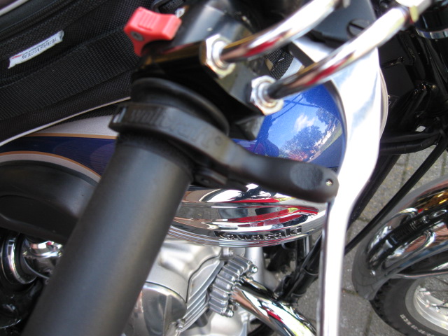Durch das Klettband kann der Gasgriff geschlossen werden weil die Klemme dort durchrutschen kann