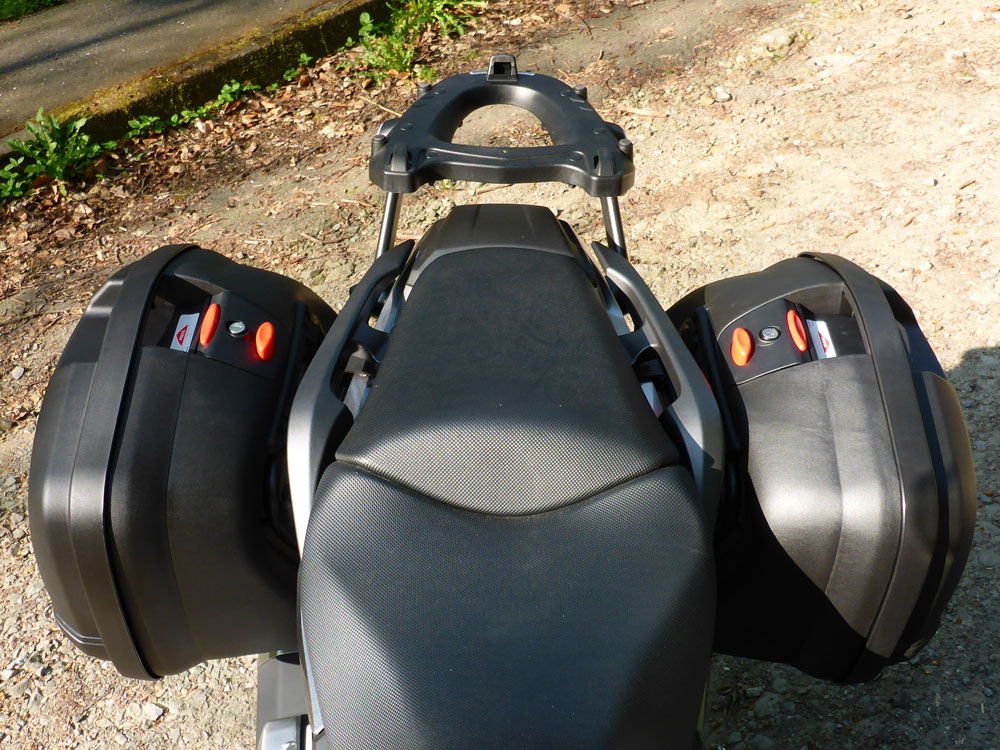 Die Koffer und auch das Topcase sitzen bombenfest.