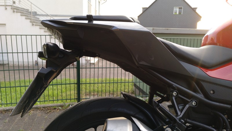 viel Zubehör (kurzer Kennzeichenhalter, verstellbare Hebel, Spritzschutz hinten, Tourenscheibe)