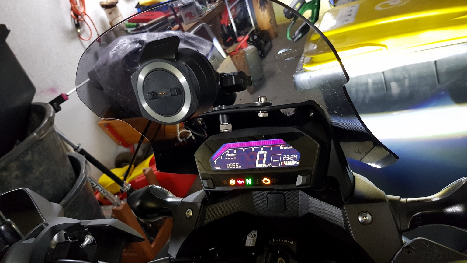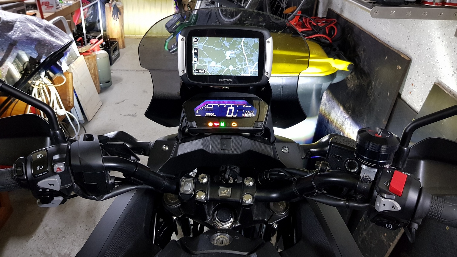 aktuell habe ich bei meiner Yamaha XT660Z Tenere das Navi (Zumo 660) direkt oberhalb des Tachometers verbaut und finde diese Position sehr angenehm zum Ablesen, da der Blick von der Straße nicht abgelenkt wird. Zudem habe ich weniger Probleme mit Spiegelungen als mit der Montage am Lenker oder Lenkerstrebe. Das Navi Teil ist etwas besser Regengeschützt da es von unten / hinten nicht geduscht wird.