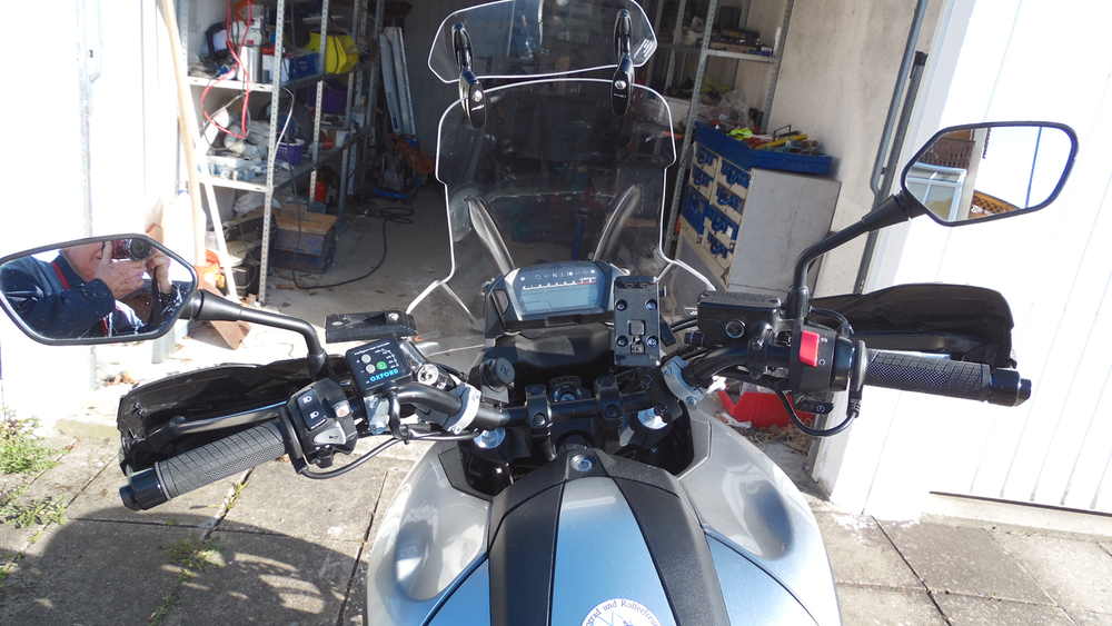 Ich hab mir auf meine 700X die von Oxfort montiert mit 5 Stufenschalter, war gefummel aber sitzt passt wackelt und hat Luft, hab sie auch noch über ein Relais geschaltet zusammen mit Navi, das über Zündung Ein-Aus geschaltet, somit ist ein vergessen zum ausschalten ausgeschlossen