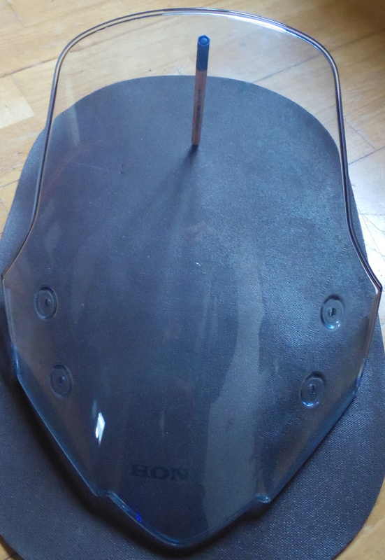 Die Scheibe hat sich bewährt, sie sieht gut aus und leitet den Luftstrom nicht mehr genau auf den Helm, sondern auf die Brust, was deutlich angenehmer ist.