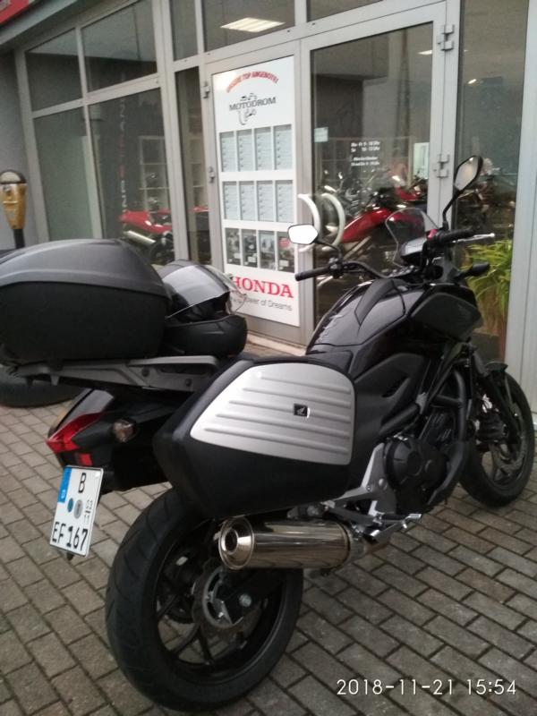 Vor einen Jahr, im November 2018 meine NC (EZ:2014) mit 8300 km beim HH mit Honda-Seitenkoffern, Topcase, Bodystyle Kettenschutz und Hauptständer gekauft. Im Winter wurden noch folgende Teile angebaut: