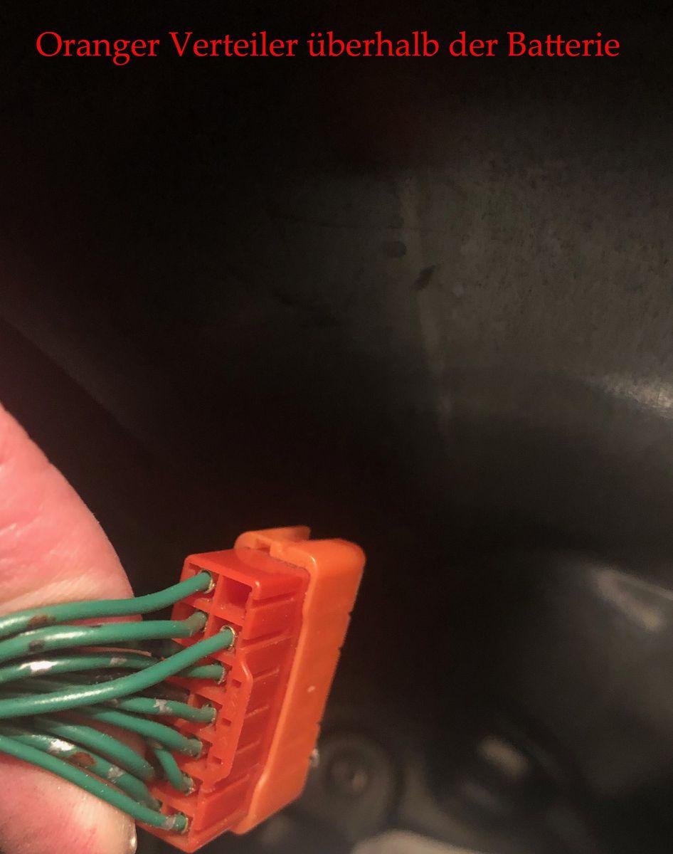 2. Anschluss an die "Orangen Verteiler" überhalb der Batterie: Hier bin ich mir nicht sicher, ob ich die Kabel in den Stecker einführe oder welches Kabel ich zum Anschluss hernehmen soll/kann.