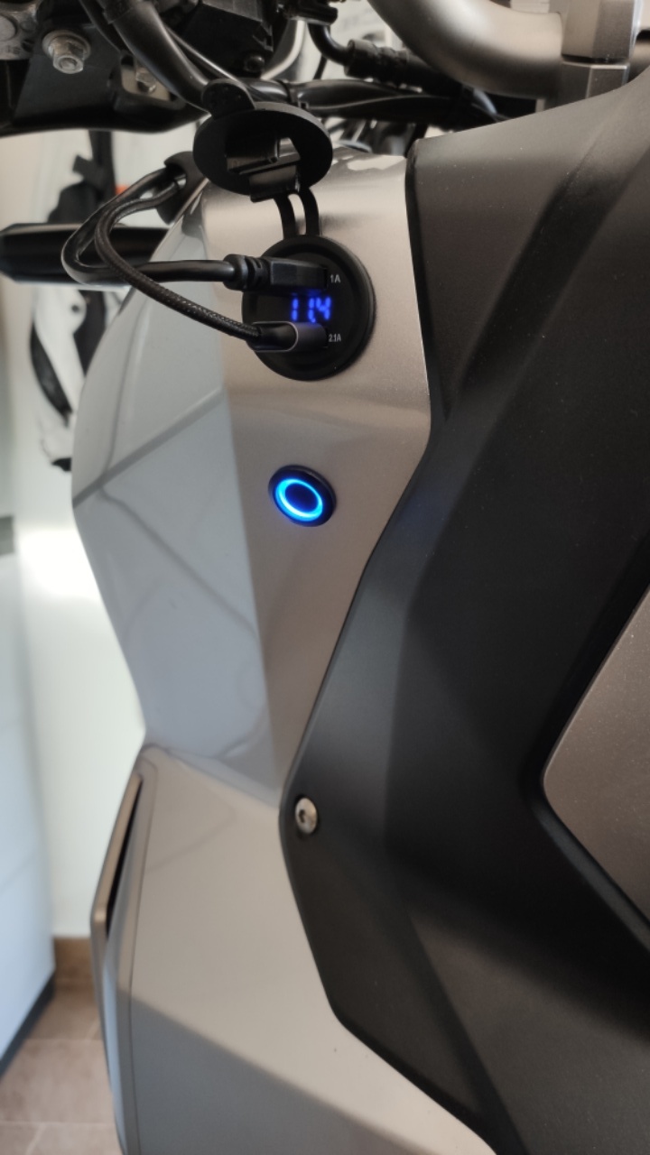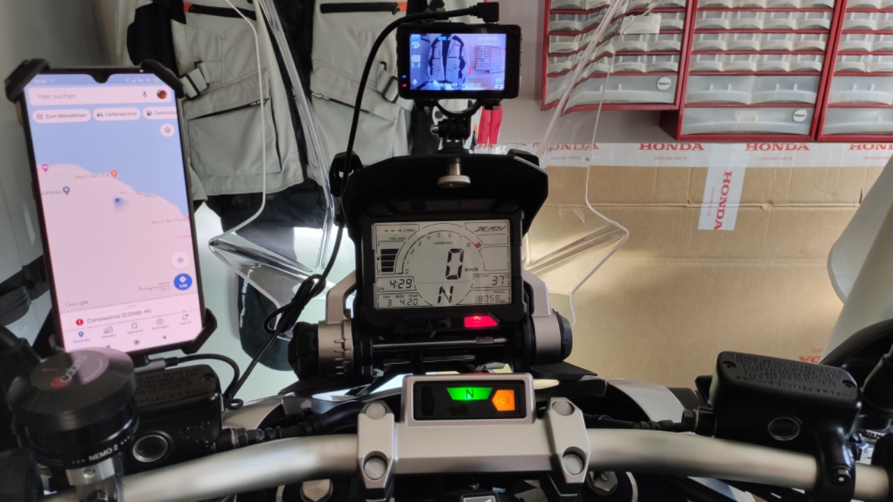 Nachdem mein Moped instandgesetzt wurde habe ich mich an den Rest der Arbeiten gemacht. Mein Kühler sah schon etwas lediert aus, als hab ich ihm einen Kühlerschutz verpasst, der instandgesetzten Ölwanne einen Motorschutz. Fürs Handy eine Halterung von Grefay, Halterung für Dashcam selbst gebastelt (seit meinem Unfall fahre ich nicht mehr ohne), Flaggscheinwerfer zwischen der Gabel (ohne Zulassung aber sau hell), Schalter für diesen an der Front links und ebenfalls dort noch eine Doppel-USB- Steckdose, Stromzufuhr über Kabel von der Zuleitung der 12V-Steckdose.🤪🤪🤪