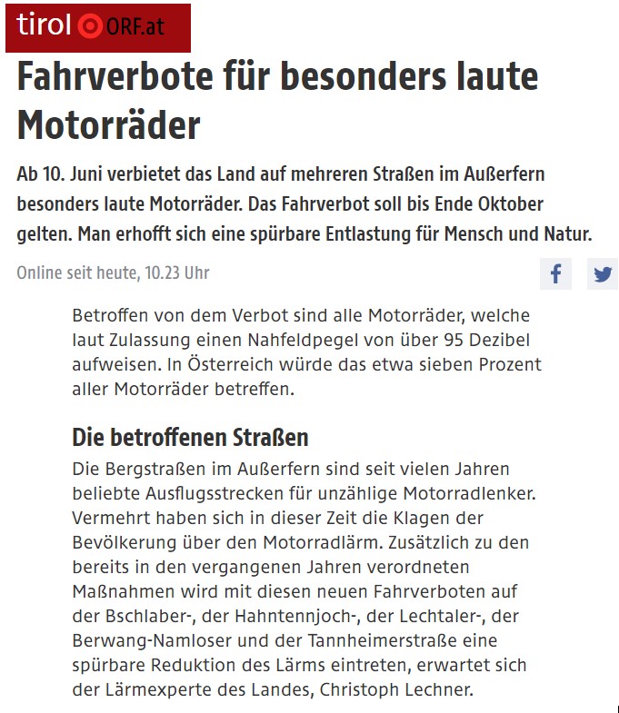 Fahrverbote für besonders laute Motorräder in Tirol