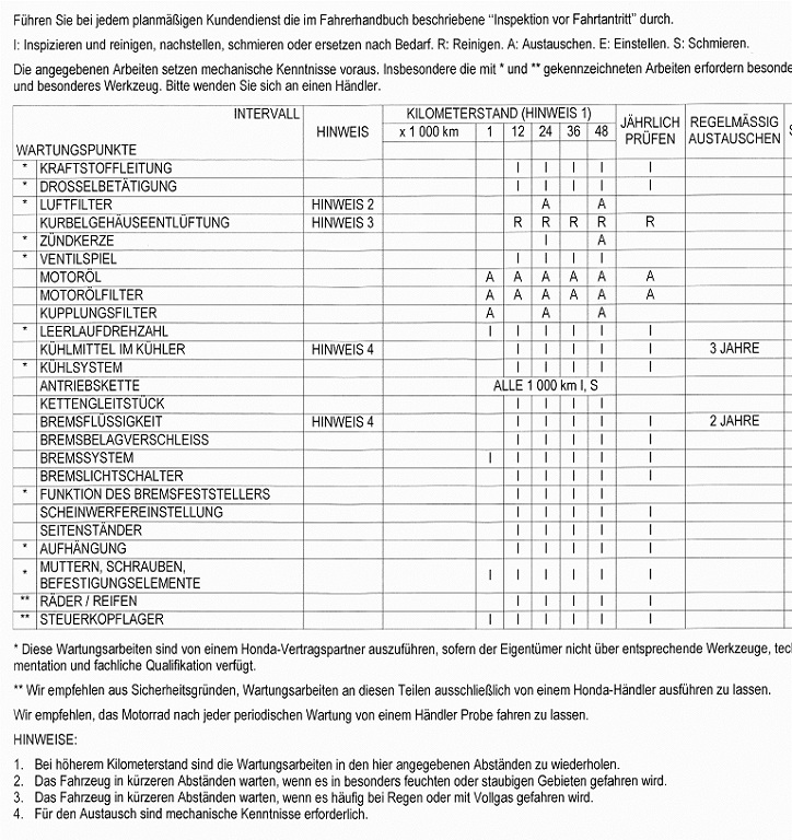 Ich hätte da auch mal ne frage,wie ist das mit der 12000 inspektion muss ich da nach einem Jahr hin oder erst bei 12000km? denn ich war erst im September bei der 1000er wäre doch jetzt un-und blödsinnig wenn ich dieses Jahr wieder Inspektion und Ölwechsel machen müsste obwohl ich noch keine 12000 drauf habe,das wäre dann doch wohl nur Geldschneiderei oder muss ich das wegen der Garntie?