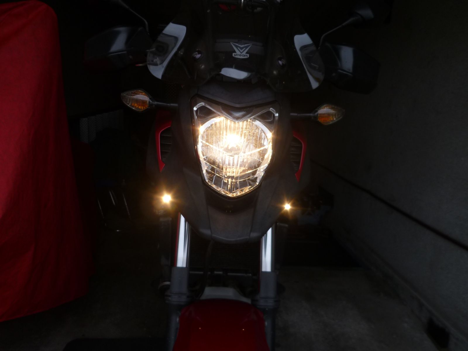 Im Zusammenspiel von H4-Fahrlicht und den beiden LED-Positionsleuchten hoffe ich nun etwas besser gesehen zu werden.
