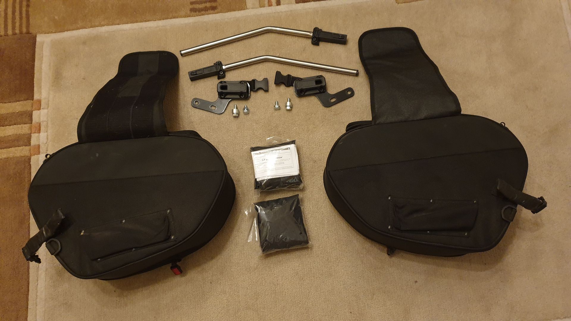 Die Taschen sind gebraucht, aber in einem guten Allgemeinzustand ohne ersichtliche Beschädigungen mit allen Haltern und Schrauben!