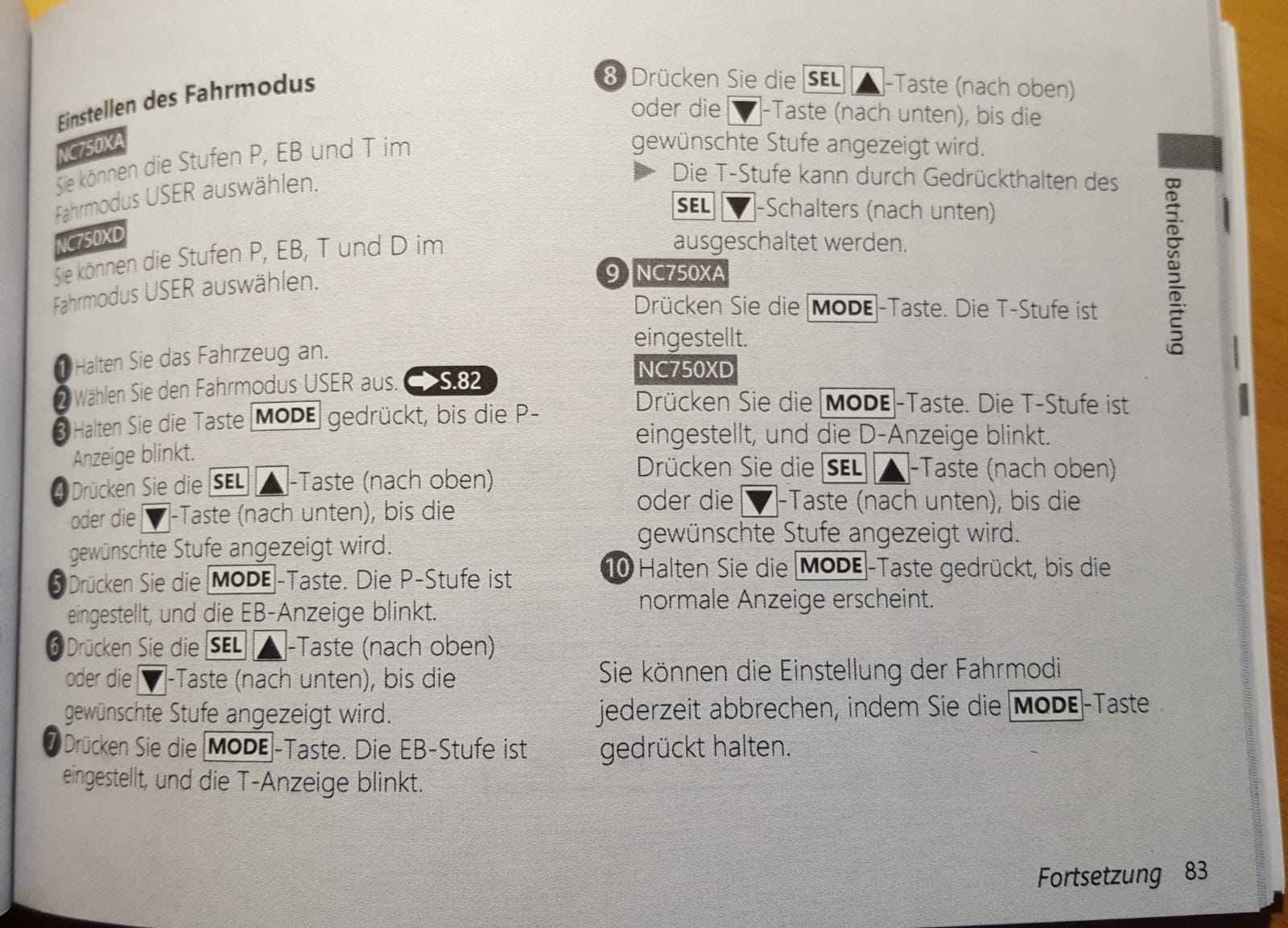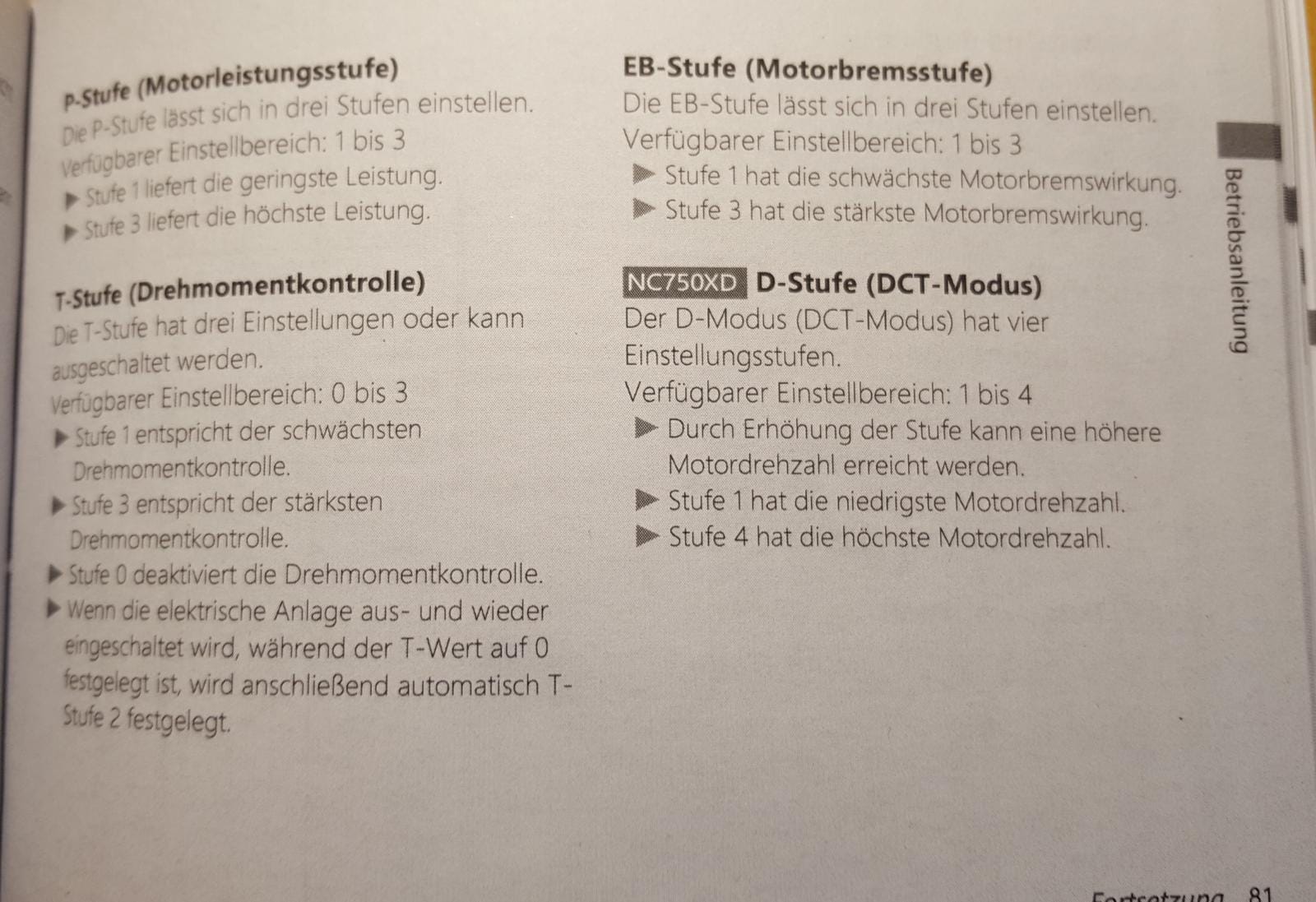 Naja, da überschätzt du die Einstellmöglichkeiten der NC in einer unrealistischen Größenordnung. Das ist alles total selbsterklärend und innerhalb von wenigen Sekunden eingestellt. Die 4 Stufen des D-Modus sind sinnvoll, um die Schaltzeitpunkte an die eigene Fahrweise anzupassen. Man kann ja auch in einem vorgegebenen Modus unterwegs sein und muss dann garnichts machen. Alles ganz simpel. Ansonsten gibt es natürlich auch noch andere Motorräder am Markt, die keine Einstellungsmöglichkeiten bieten. Für Puristen gibt es also auch passende Produkte.