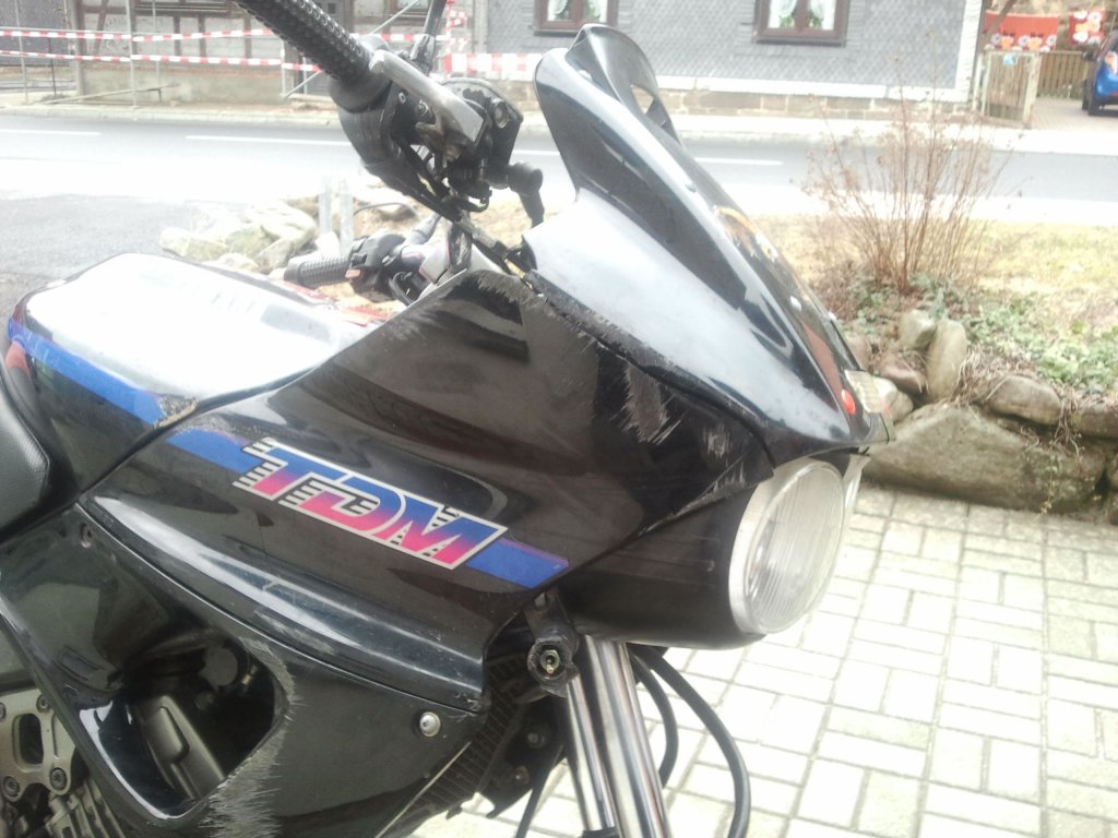 Nachdem ich jetzt 1 Jahr lang drauf gespart habe, habe ich mir vor 3 Wochen aus nettes gegönnt. Eine 20 Jahre alte Yamaha TDM 850 3VD.