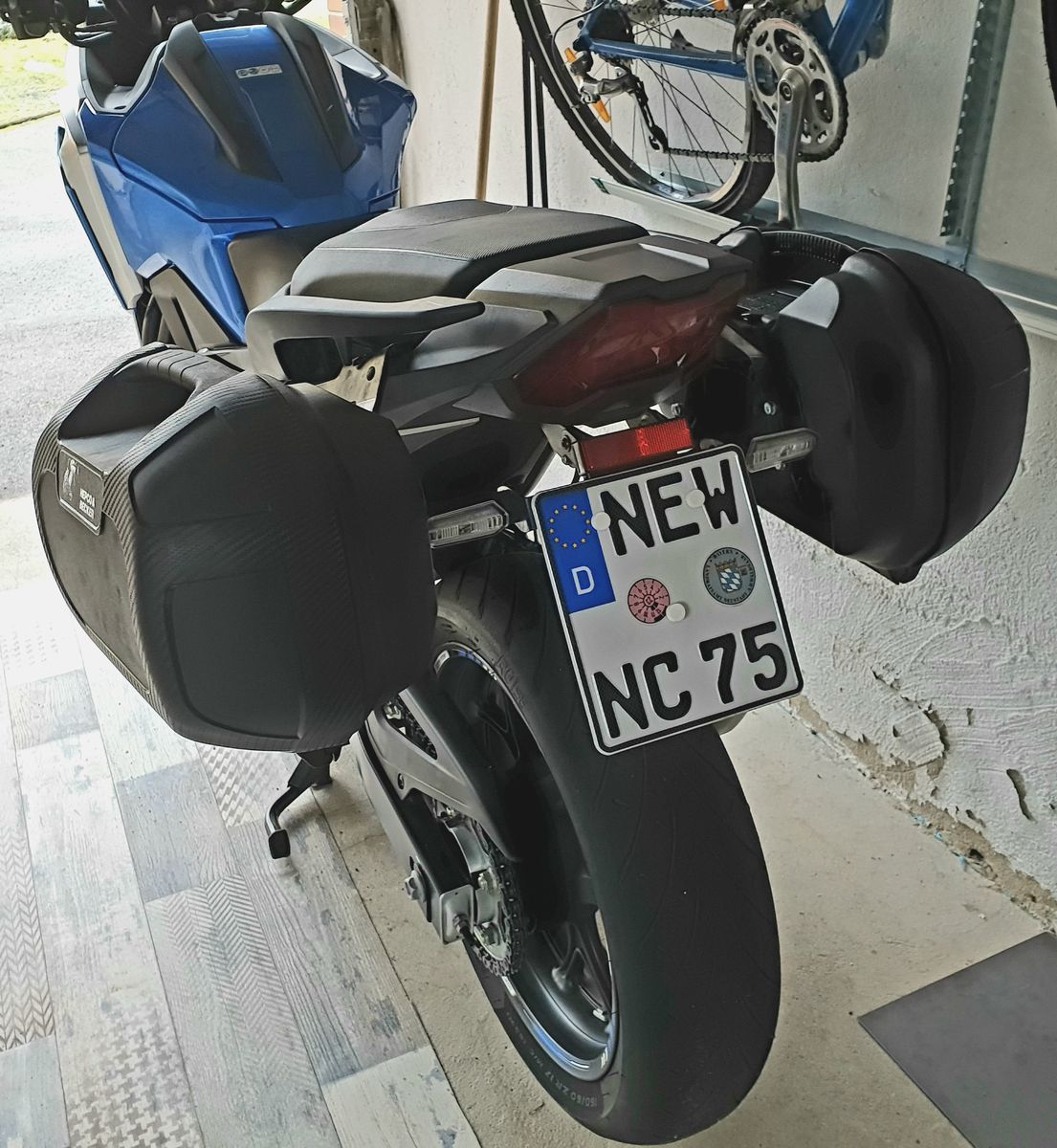 Habe eben alles montiert. Halter TC und Koffer. Passte alles außer das mir die Kugel oder was es ist von der linken Seite von der Fussraste abhanden gekommen ist und die Raste nun nicht mehr einhakt.