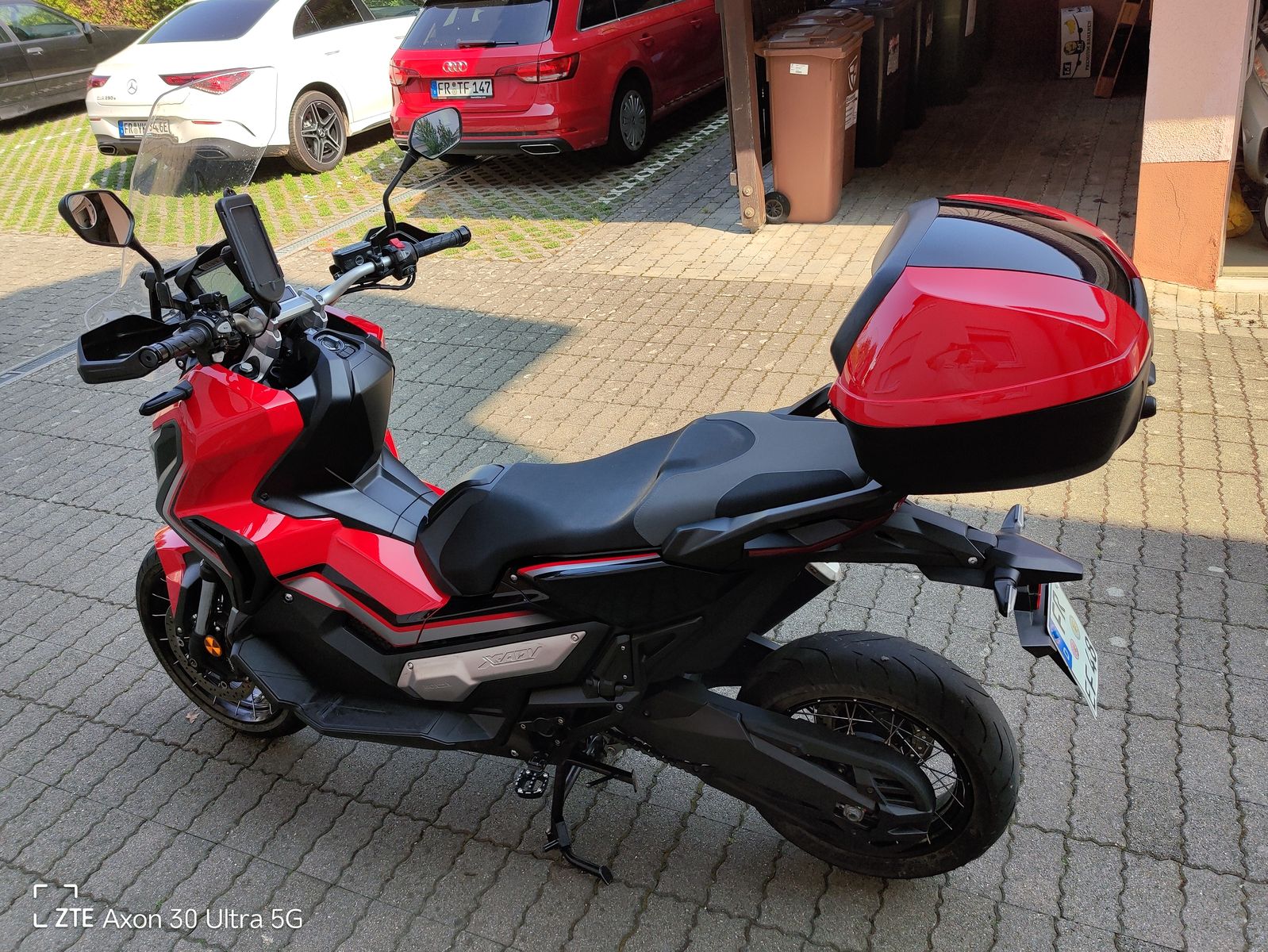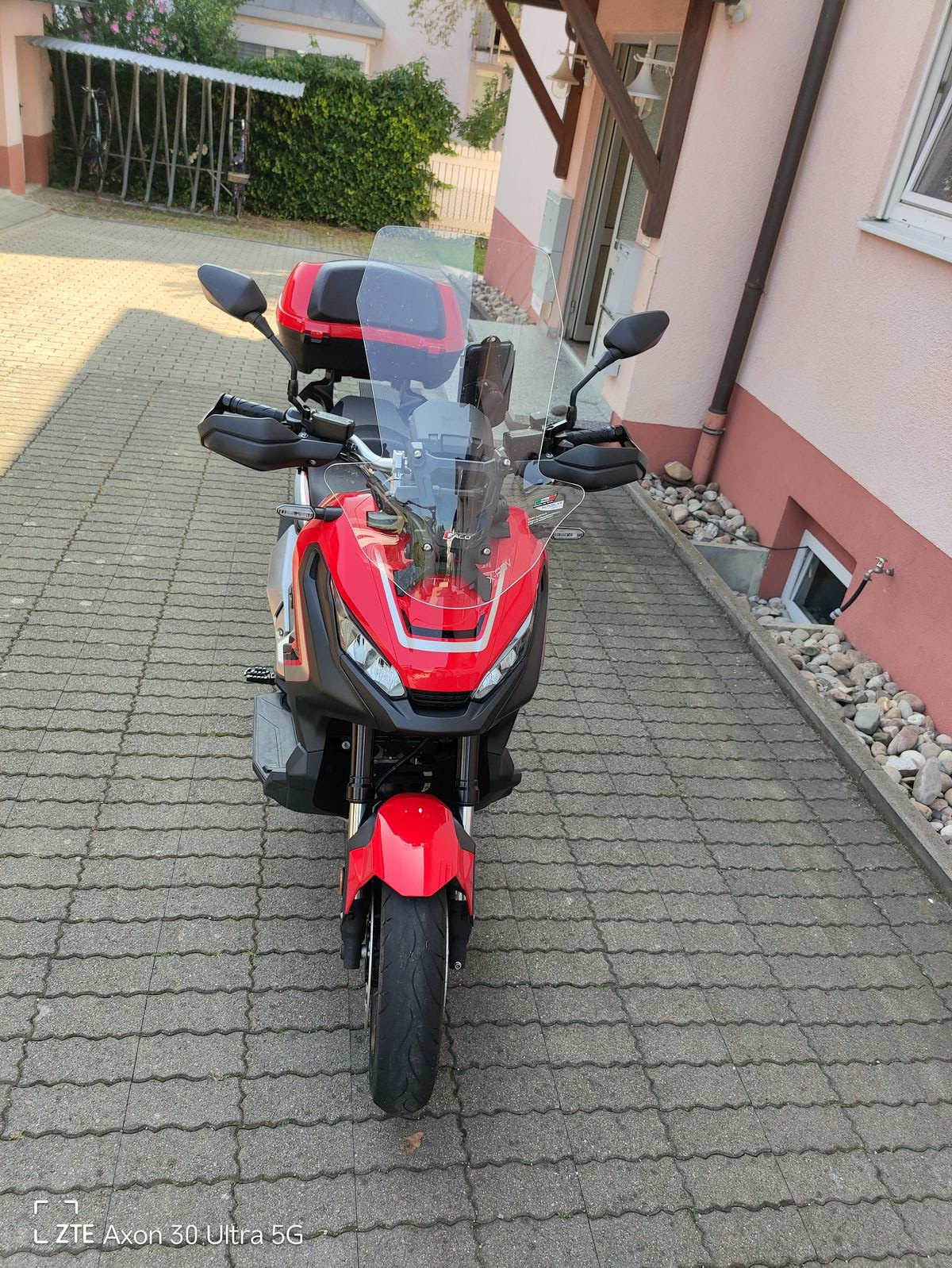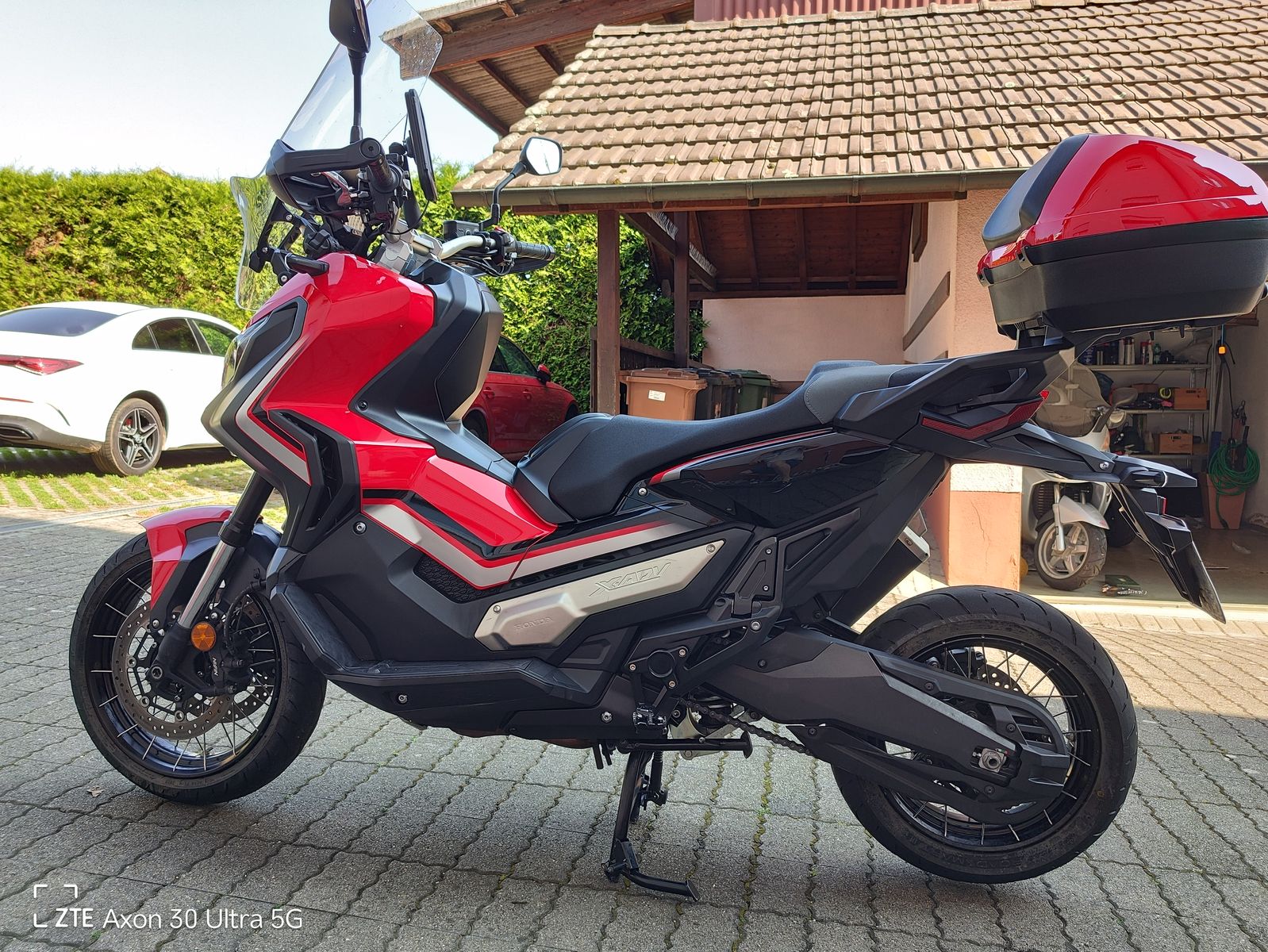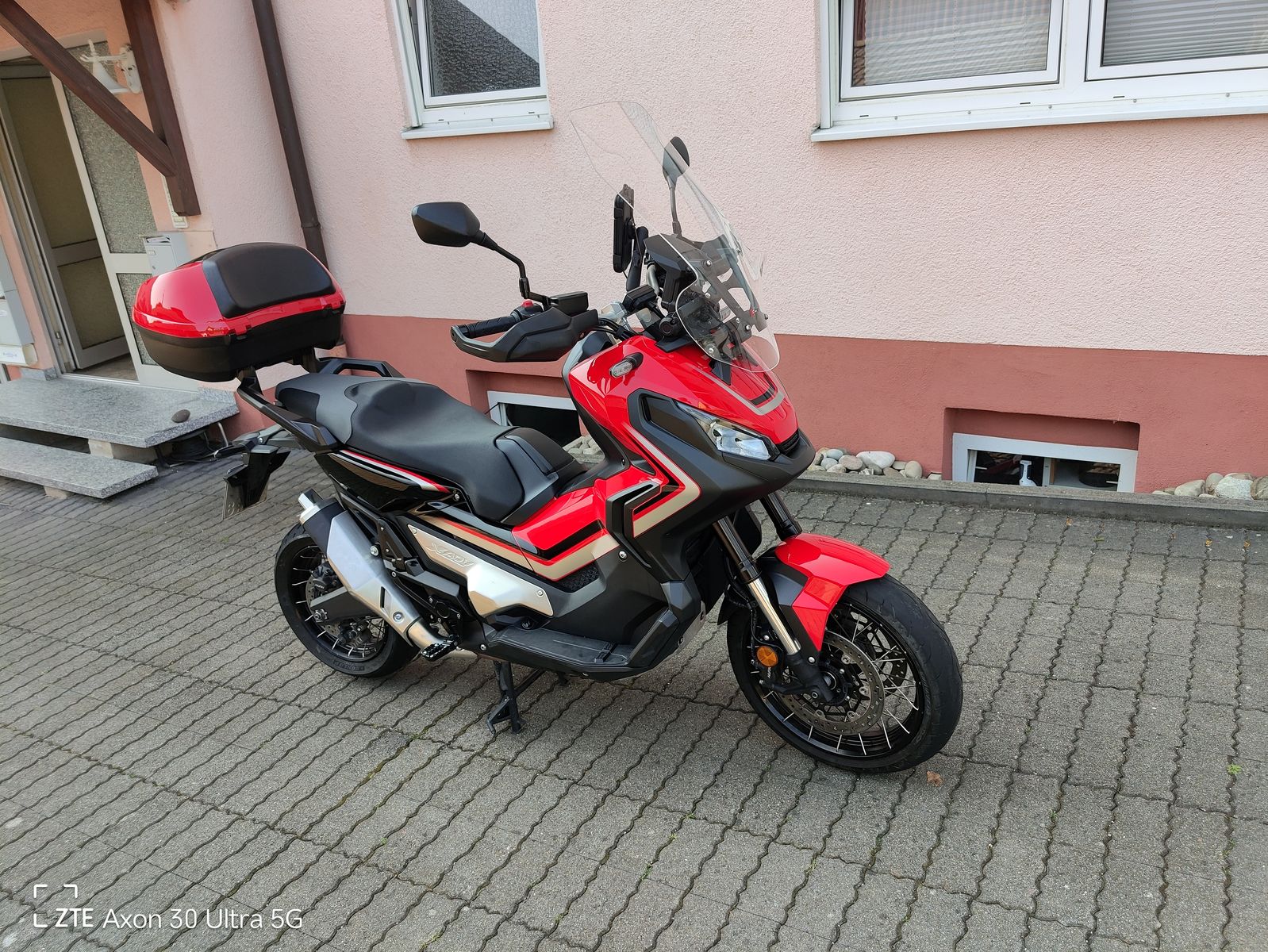 HONDA TEXT: Honda X-ADV 750 DCT mit Doppelkupplungsgetriebe !(DCT, schalten per Fingertipp Eine Crossover-Maschine mit guter Geländegängigkeit. Es ist schwer, etwas völlig Neues zu erschaffen, doch mit dem X-ADV ist uns genau das gelungen. Geplant und umgesetzt von unserem italienischen Forschungs- und Entwicklungs-Team bringt er frischen Wind in unser Adventure-Modellprogramm. Der X-ADV ist unverkennbar. Mit einer ungewöhnlichen Kombination aus Raffinesse und Robustheit sticht er als Gesamtkonzept aus der Masse heraus und gründet damit eine völlig neue Fahrzeugklasse. Herzstück des X-ADVs ist ein 745-ccm-Zweizylindermotor, der genug Drehmoment für den Stop-n-Go-Verkehr in der Stadt bietet und gleichzeitig ausreichend Drehzahl für Geländefahrten bereitstellt. Durch die Kombination mit dem Doppelkupplungsgetriebe DCT ähnlich jenem der Africa Twin wird auf allen Untergründen ohne Zugkraftunterbrechung geschaltet. Gelände oder Asphalt Sie haben die Wahl. Auf und davonDer X-ADV ist bereit, wenn der Ruf nach Abenteuer ertönt. Drücken Sie einfach den G-Schalter und los geht's. SPASS HABEN Ein Motorrad, das sich wie ein SUV verhält und das auch abseits der Stadt eine gute Figur macht.Der wendige X-ADV fühlt sich im täglichen Stadtverkehr pudelwohl und am Wochenende können Sie mit ihm entfernte Ziele anvisieren. Eine gute Sicht Nehmen Sie Platz Ideale Proportionen für die Fahrt alleine oder zu zweit und hochwertige Materialien sorgen dafür, dass Sie auch auf langen Touren keinen Komfort missen. Die Sitzbank hat die ideale Höhe für Stadt- wie Überlandfahrten und bietet hervorragende Sicht bei aufrechter Sitzposition. Handprotektoren Ohne die Handprotektoren wäre es kein richtiges Crossover-Bike. Es sind die gleichen wie bei der Africa Twin und sie dienen nicht nur der Optik: Die Hände werden vor Wind und Wetter sowie bei Offroadfahrten vor Steinen oder Schmutz geschützt. Verstellbarer Windschirm Der Windschirm des X-ADVs ist ohne Werkzeug in fünf Stufen höhenverstellbar und bietet idealen Schutz vor Wind und Wetter.