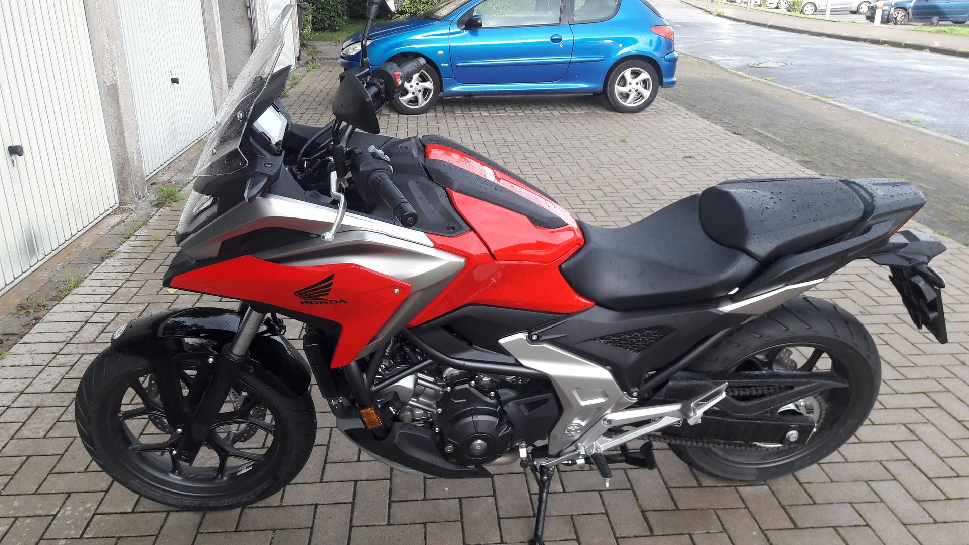 meine bisherige NC mit DCT hat die bereits in einem anderen Beitrag beschriebenen Probleme beim Schalten. Aus wirtschaftlichen Gründen habe ich von einer Reparatur abgesehen und mir letzte Woche Mittwoch eine neue NC mit manueller Schaltung gekauft. Heute habe ich die Maschine beim Händler abgeholt und leider direkt die ersten 50 km im Regen gefahren. Trotzdem hat es Spaß gemacht.