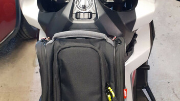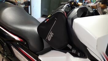 Nach einigen Fahrten konnte ich feststellen, daß sich die Givi-Tasche super an den Tunnel anpasst, nicht verrutscht und zum Tanken ganz unkompliziert entfernen und wieder befestigen läßt.