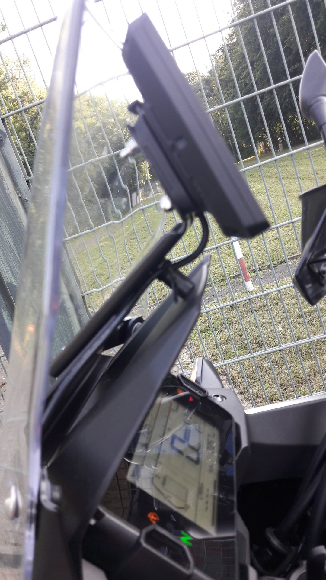 Die Handprotektoren sind von Givi und waren an meiner vorherigen NC montiert. Ich hatte sie gekürzt so dass sie um 25 mm näher an den Lenker herankommen. Dafür war die Bohrung zur Halterung am Lenkerende und die Haltebleche am Rückspiegel zu verändern. Der Kupplungshebel kommt jetzt gerade eben an den linken Handprotektor, mal schauen wie sich das im Fahrbetrieb auswirkt. Vielleicht schau ich da noch nach einem anderen Kupplungshebel.