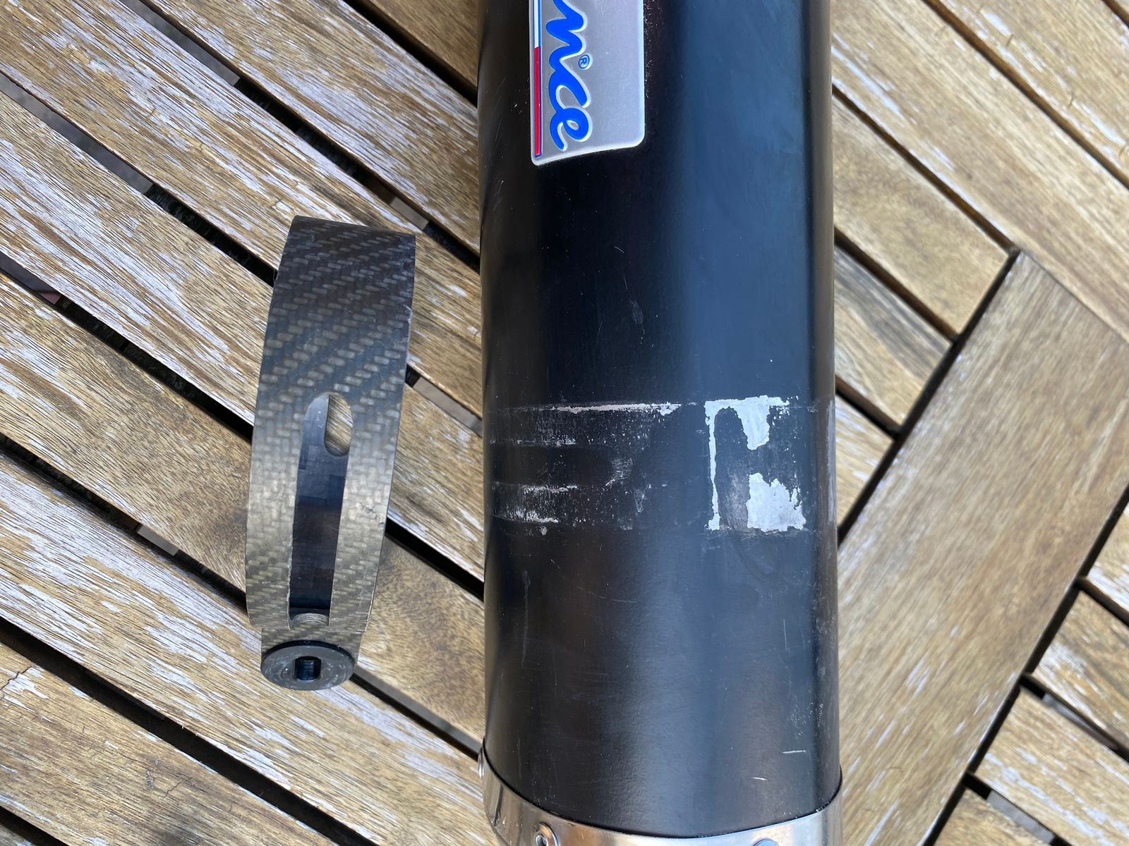 gebrauchter LeoVince Slip On für NC 700 mit ABE bzw. e-Nummer. Der Endtopf hat ca. 10.000 km gelaufen. Ein Paar Kratzer sind vorhanden, die Lackabschürfung unterhalb der Befestigungsschelle sind unvermeidbar und nach der Montage nicht mehr erkennbar. Toller basslastiger Sound ohne Krawallambitionen.