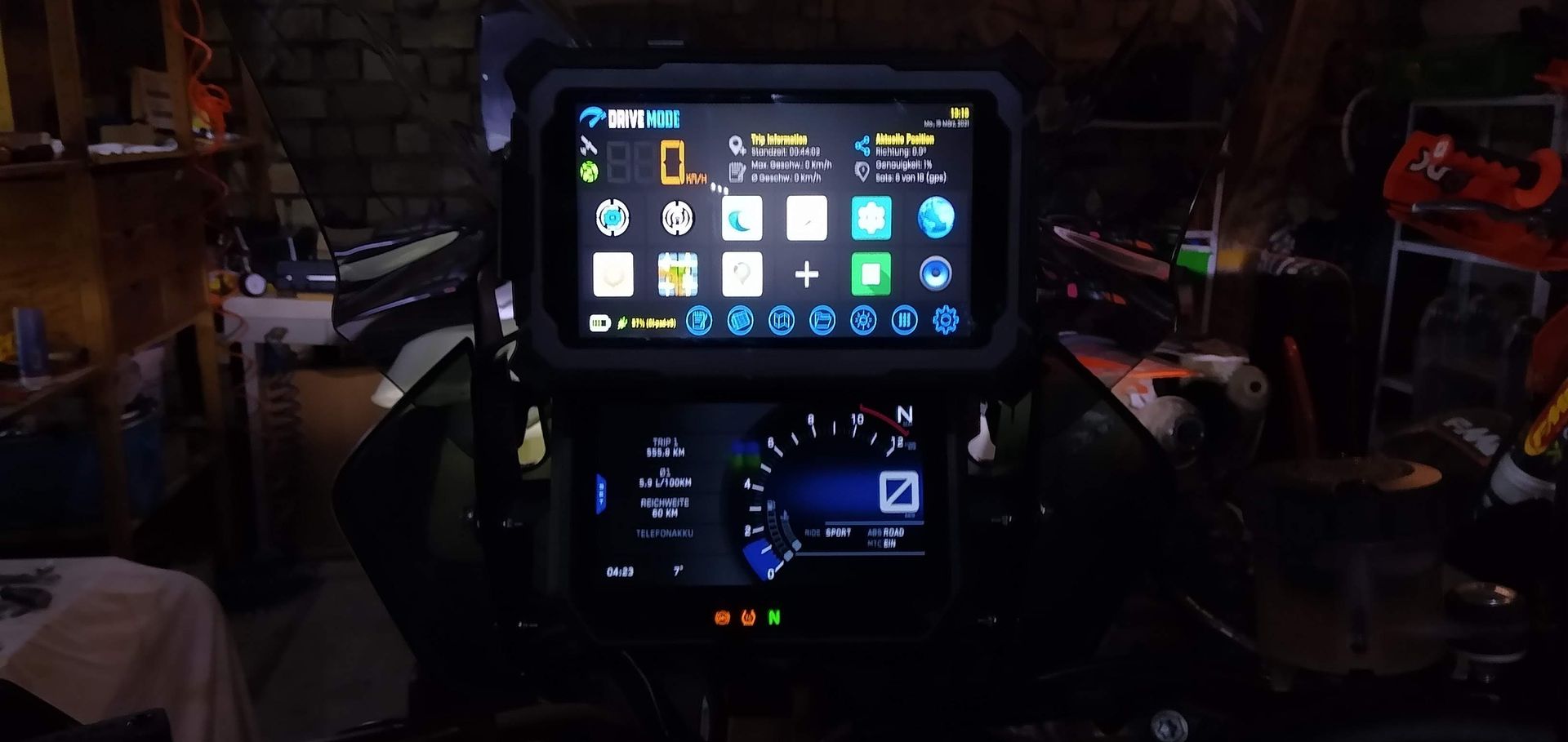 Ich habe mein Garmin Zumo XT mit der mitgelieferten Halterung direkt an den Lenker befestigt. Das passt perfekt. Navi und Tacho haben den gleichen Neigungswinkel, es liegt direkt im Blickfeld, beide Schlösser lassen sich ohne Einschränkung bedienen.