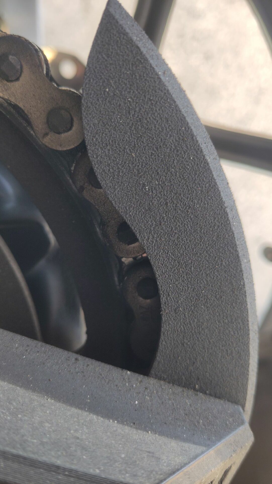 Ich hänge mich mal hier dran. Die im Eröffnungsbeitrag angesprochene Kettenradabdeckung habe ich mir vor geraumer Zeit zugelegt, allerdings von der Firma MParts3D aus der Slovakei, hat mit Versand 27,40 € gekostet. Sie wird auf das Ende der Schwinge geschoben und fängt das von Kettenrad und Kette abgeschleuderte Öl auf.