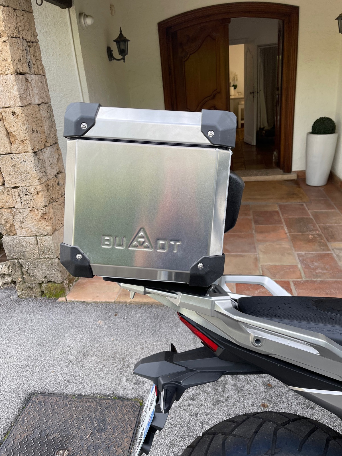 es ist der original honda gepäckträger für ca 300 euro. bumot hat mir die passende montierplatte auf basis der crf1100/crf1000 gepäckträgerplatte modifiziert