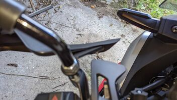 Gegebenenfalls neu ausrichten. Hier waren auch bei mir die Verlängerungsschrauben der Spiegel nützlich. Dadurch ließen sich die Protektoren etwas höher ansetzen.