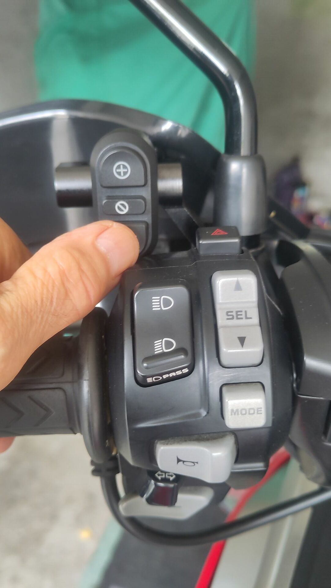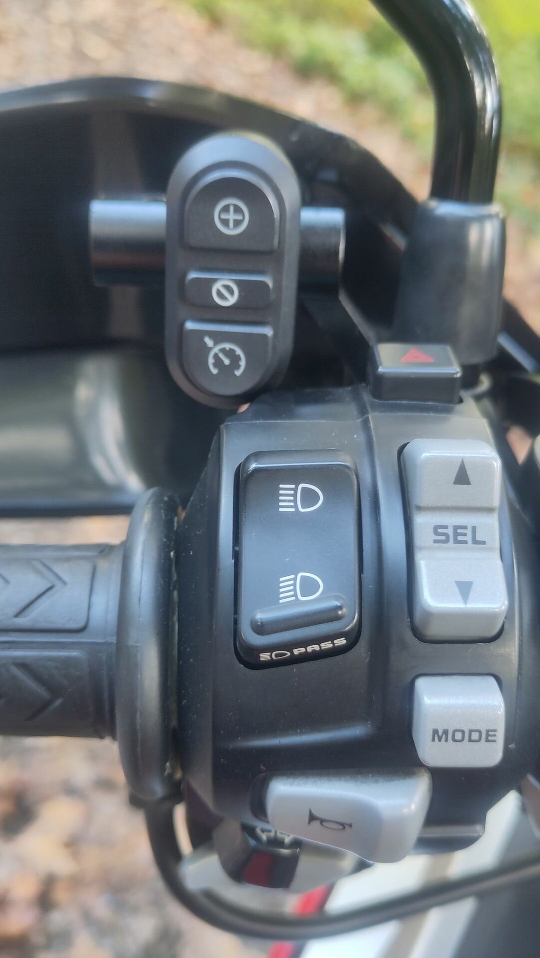 Auf meiner heutigen Fahrt habe ich eine gute Methode gefunden um den Tempomaten einzuschalten, d.h. den unteren Taster zu betätigen. Ich lege den linken Daumen auf den linken oberen Rand der originalen Schaltereinheit, das schafft man mit etwas Übung ohne hinzuschauen. Dann beschleunige ich bis zur gewünschten Geschwindigkeit, bewege den Daumen nach Vorne, drücke damit auf den Taster und der Tempomat ist eingeschaltet.
