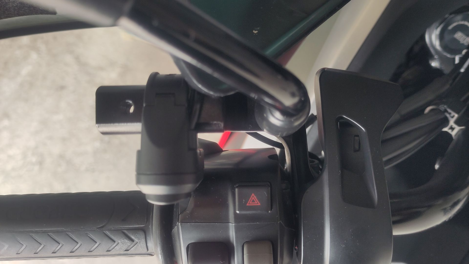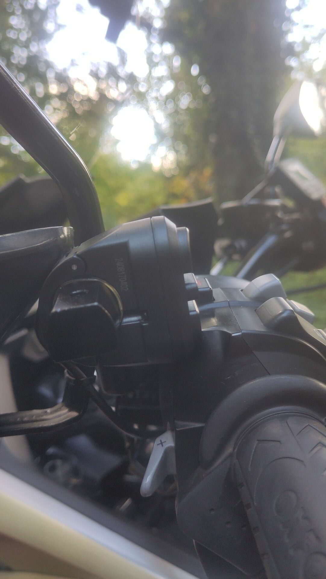 Für die Schaltereinheit des Tempomaten habe ich dann nach mehreren Testfahrten die richtige Position gefunden. Sie sitzt so weit wie möglich nach Rechts auf dem Halter, dort kann ich die Tasten gut erreichen und drücken, wahlweise mit Daumen oder Zeigefinger.