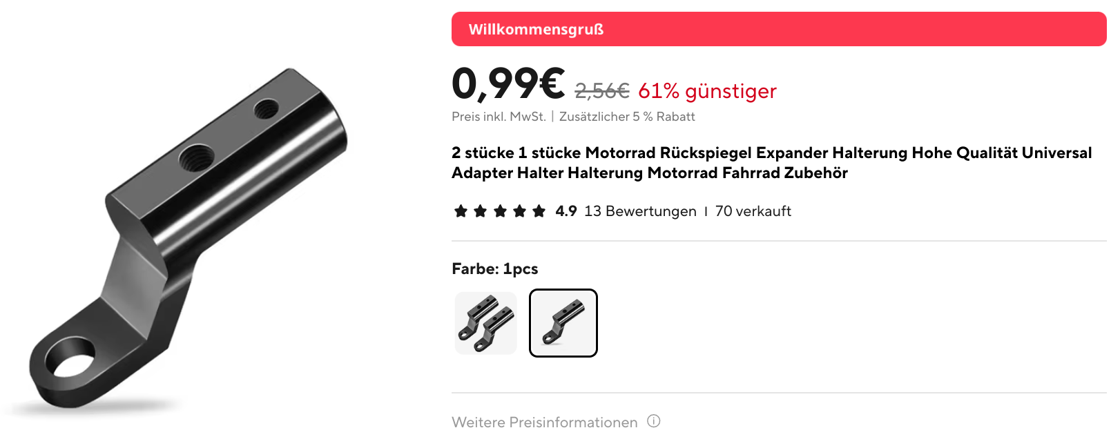 wie schon geschrieben habe ich die Halterung bei Aliexpress bestellt. Es war diese: