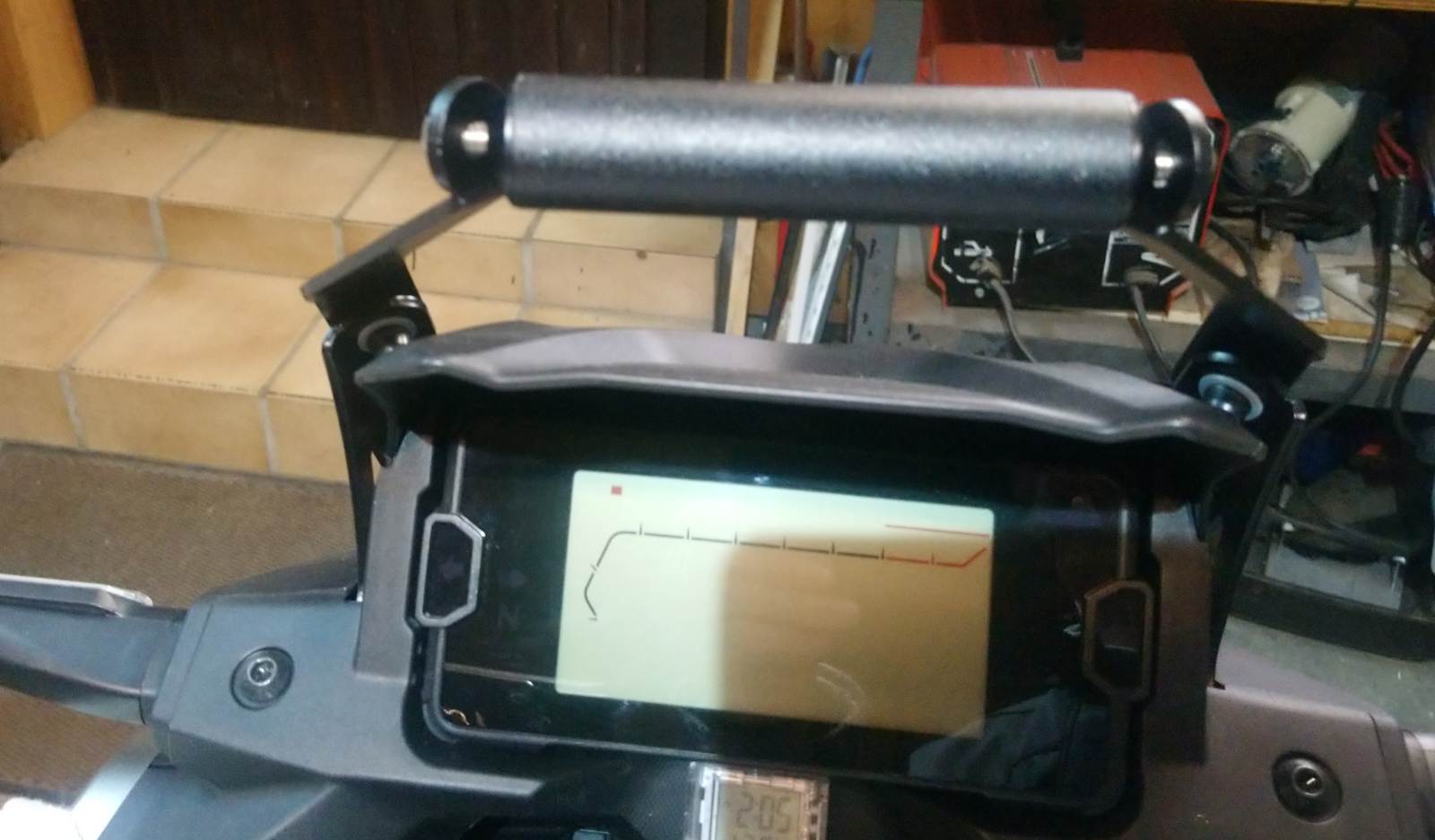 Jetzt sitzt das Navi viel besser als ich es mit den Ram Mount Komponenten hinbekommen hätte. Der Halter sitzt perfekt über dem Tacho, ist viel leichter und hat noch einen Abstützung nach unter bekommen um das ganze noch zu stabilisieren. So wollte ich es immer haben, ich hoffe das es in der Praxis hält.