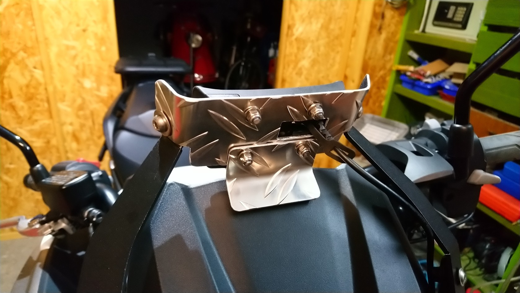 Gestern habe ich mal einen Tag gefeilt und gebastelt und den Halter mit einem Rest Aluriffelblech welches ich noch rumliegen hatte selbst fertig gebaut.