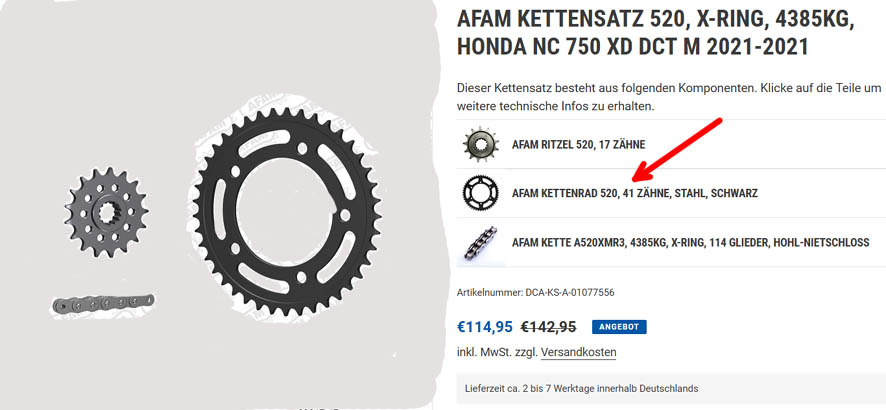 Weiß jemand wieviel Zähne das Kettenblatt hinten hat von der NC 750 x 2021 Rh09 ?