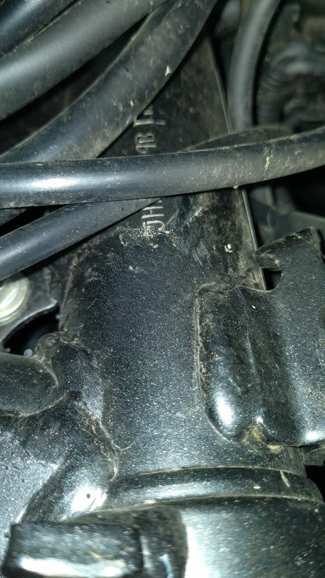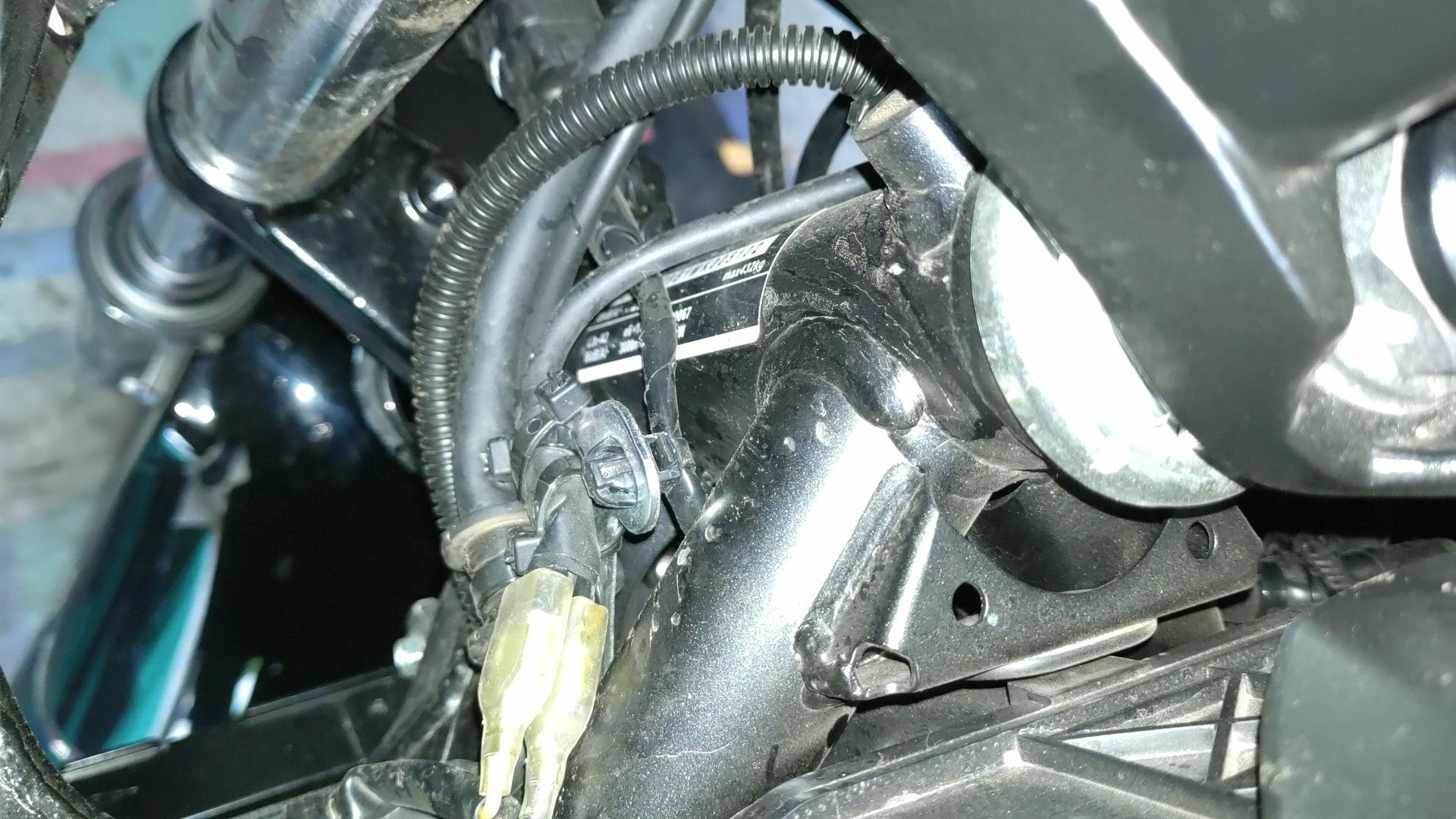Dann ist es mir mit Hilfe eines Freundes und Beleuchtung gelungen ein Foto der Rahmennummer, die am Lenkkopf eingestanzt ist, zu machen. Wobei fast die halbe Rahmennummer hinter einem Kabelstrang verborgen ist. Aber zu zweit ist es uns doch gelungen die Kabel zur Seite zu drücken und die Nummer zu fotografieren. Heraus kam eine Überraschung: Die eingestanzte Nummer ist die Fahrzeug-Identifizierungsnummer.