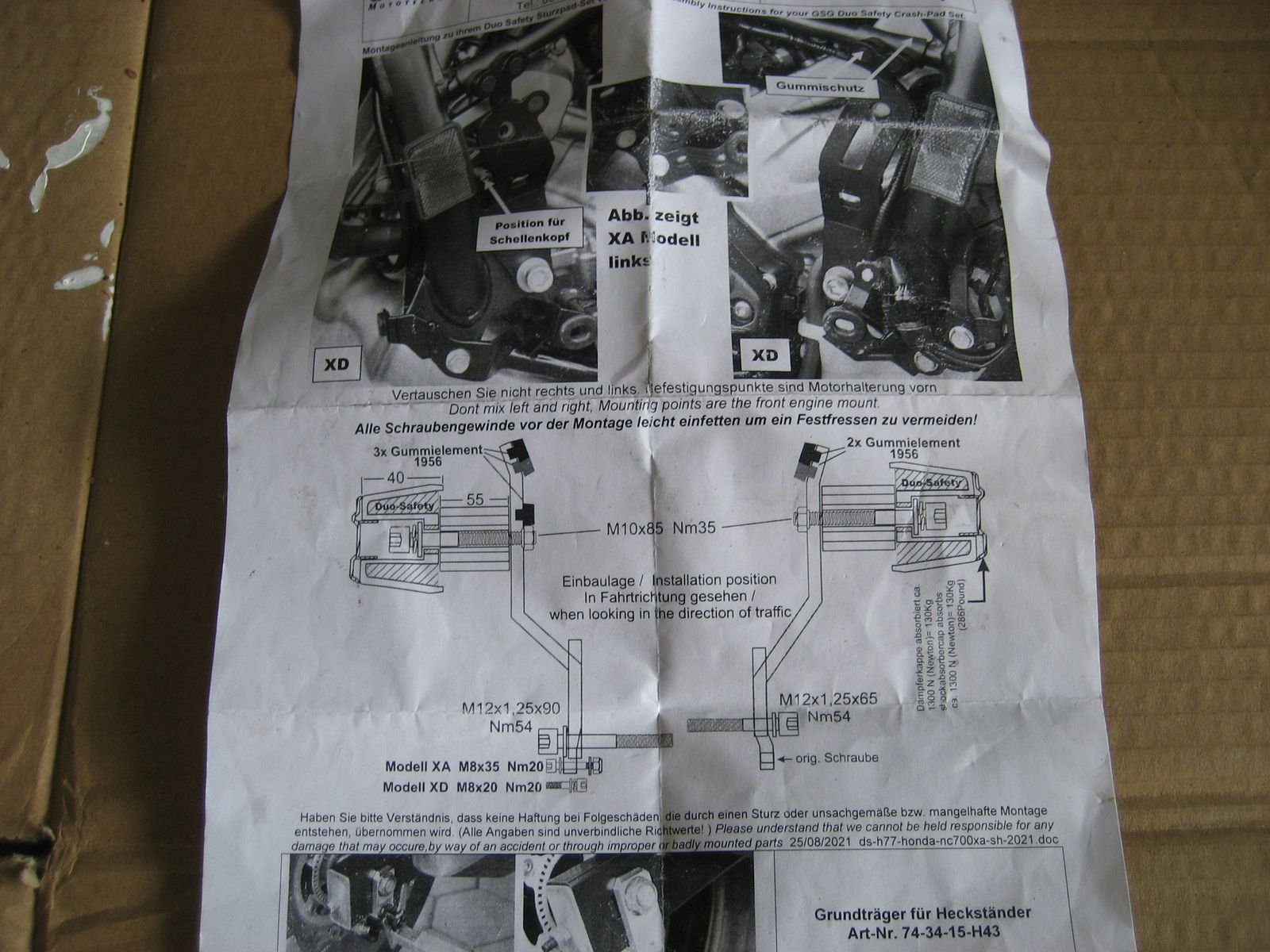 Biete für Honda NC750X Baujahr 2021 (RH09) GSG-Mototechnik Sturzpads passt auch an die Vorgängermodelle NC 700 NC 750