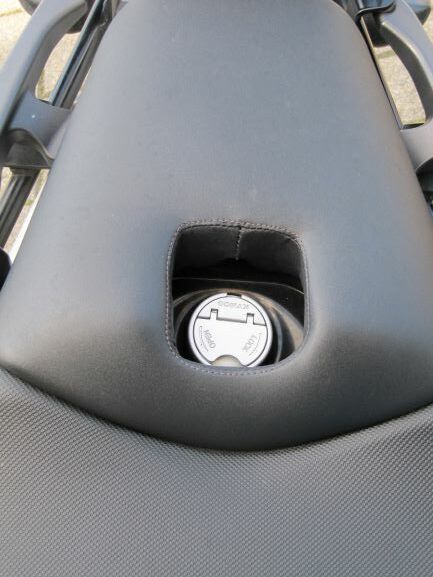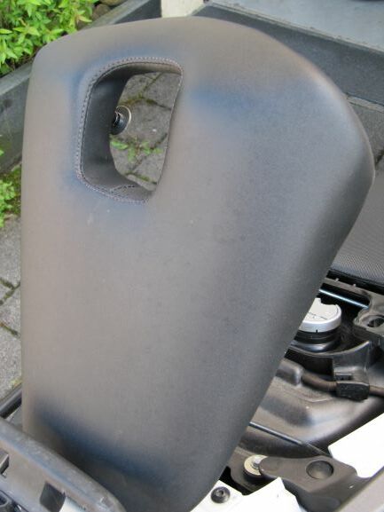 Der Soziussitz ist uneingeschränkt nutzbar. Durch die Nähte bleiben die Ränder rund ums Loch stabil.