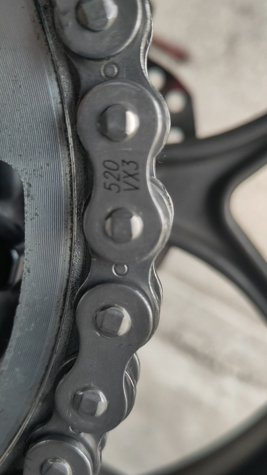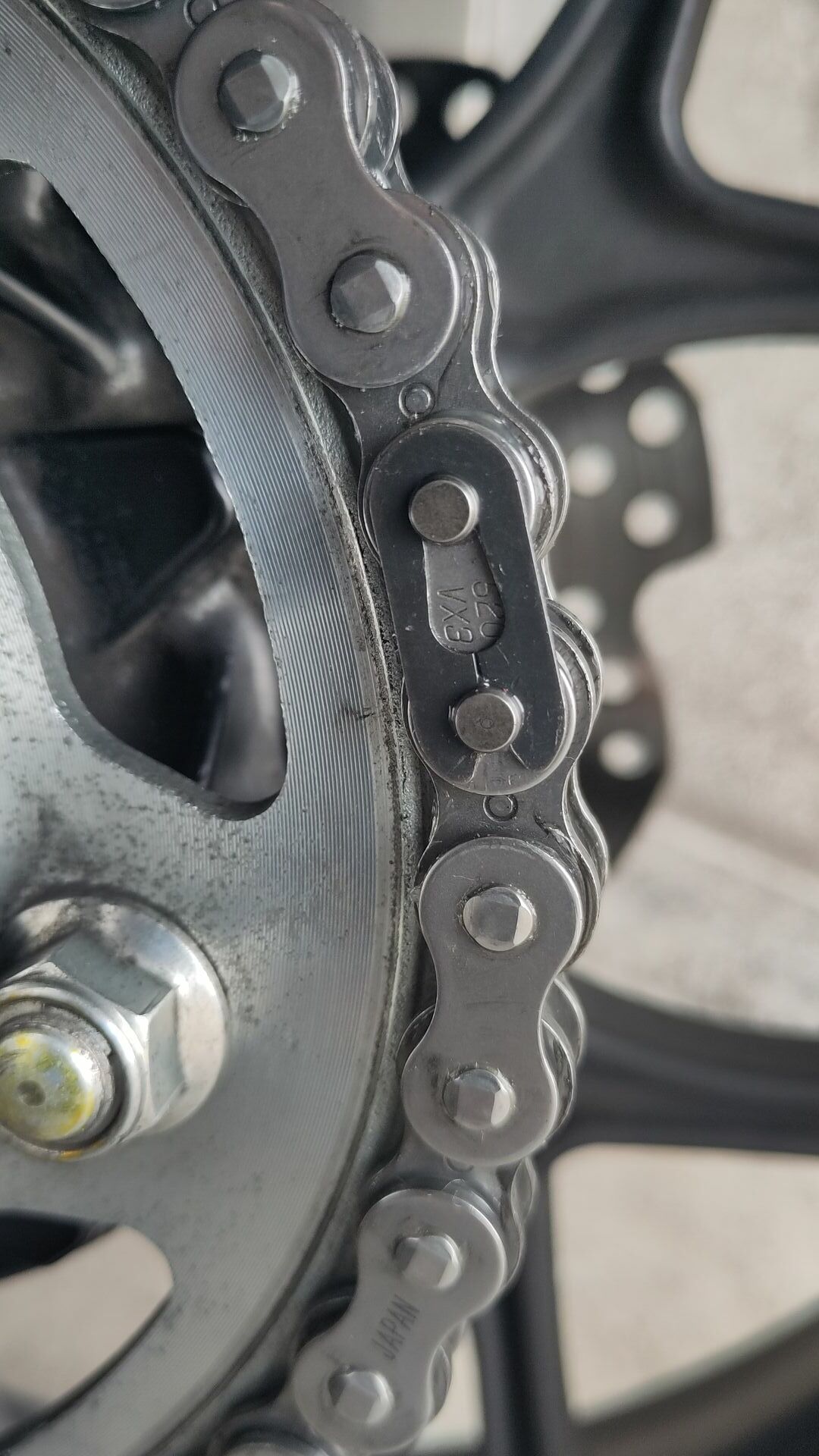 Ich fasste den Entschluss ein Experiment durchzuführen. Entgegen der allgemeinen Lehre wollte ich nur die Kette und nicht auch die Kettenräder wechseln. Bei der Kette fiel meine Wahl auf eine DID 520 VX3 mit Clipschloss. Also habe ich diese Kette für 66,80 € inkl. Versand bestellt. Vermutlich ist es die gleiche Qualität wie bei der originalen Kette oder nicht weit von dieser Qualität entfernt.