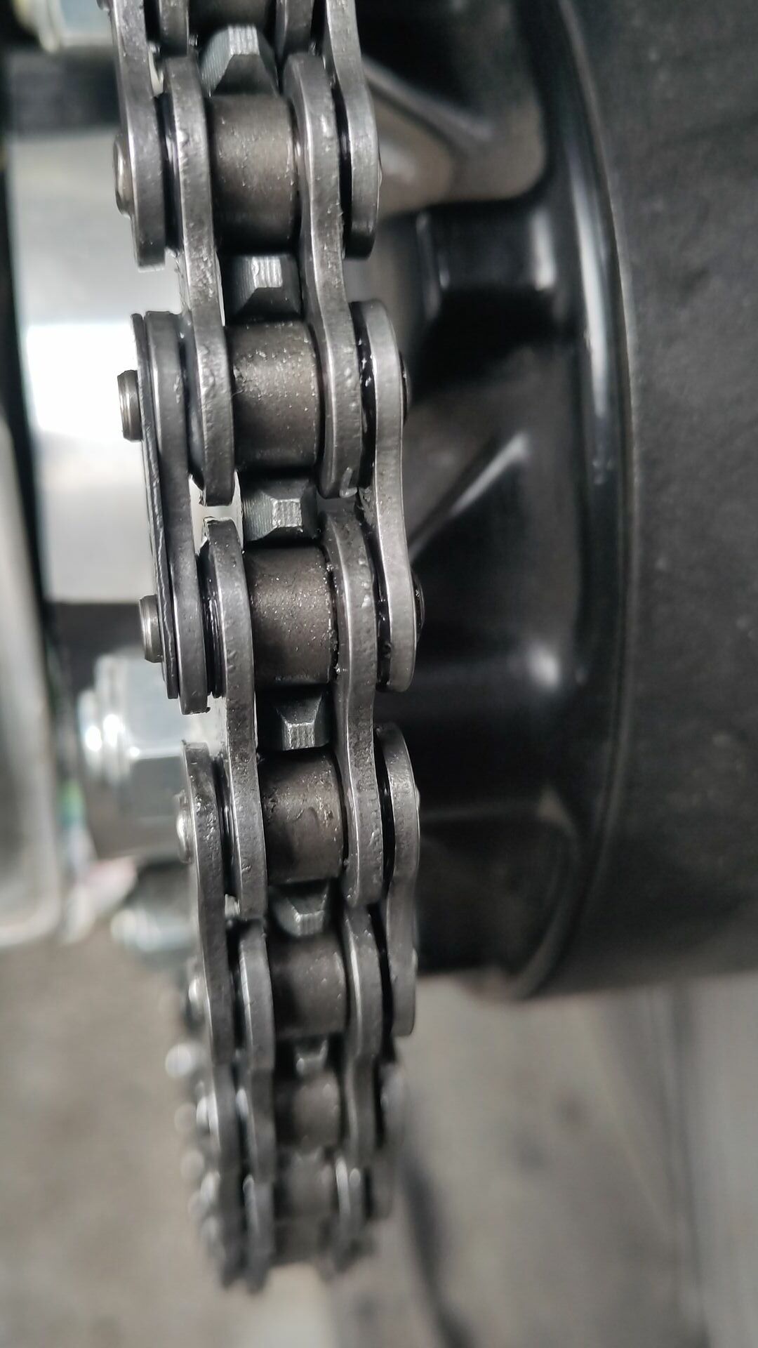 An meiner RH09 war bei einer Laufleistung von 27.435 km die originale Antriebskette nicht mehr fahrbar. Beim Fahren mit niedriger Drehzahl und konstanter Geschwindigkeit fing die Maschine an immer öfter unangenehm zu ruckeln. Eine Überprüfung ergab einen kurzen Kettenabschnitt, bei dem der Kettendurchhang deutlich über 5 mm höher war als beim Rest der Kette.