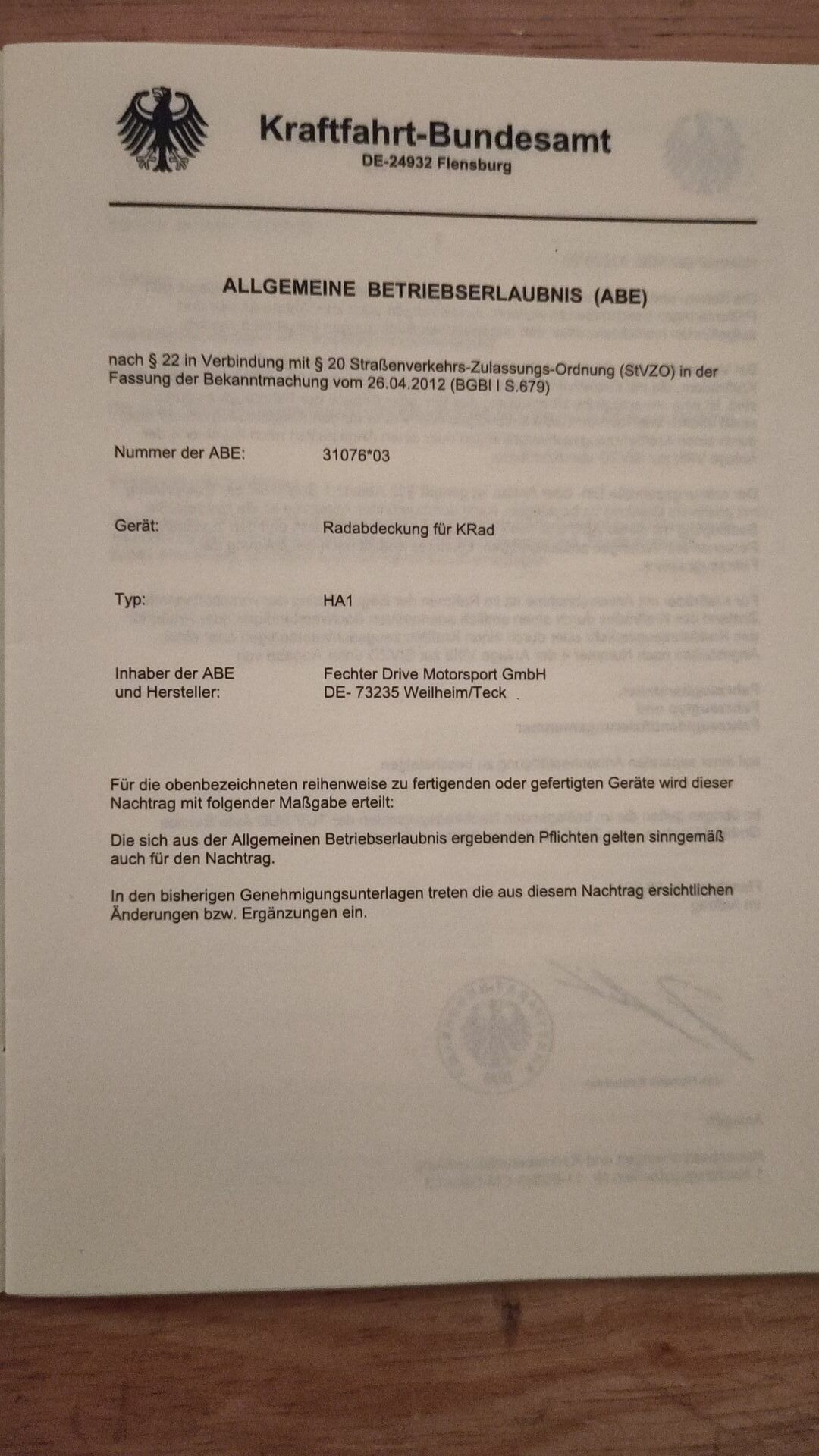 Eine ABE mit der Nr. 31076 mit Stand 04.08.2014 ist vorhanden, darin ist die RC72 aufgeführt.
