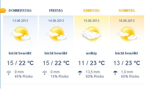Und noch was Nettes (für mich): Die Chancen stehen bei 60% für Donnerstagsanreise.