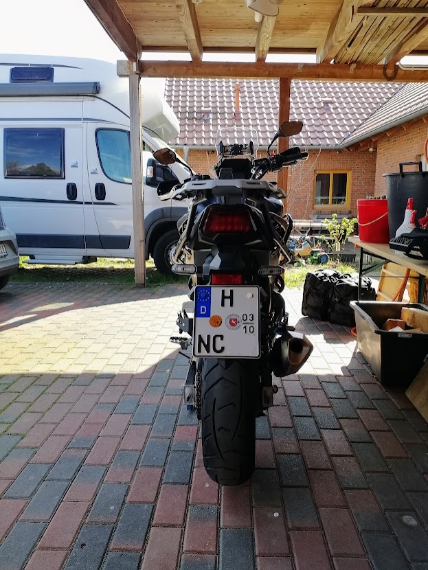Am stylichsten ist halt doch der silberne Originalbügel von Honda und passt gut zu den silbernen Verkleidungsteilen, wie ich finde.