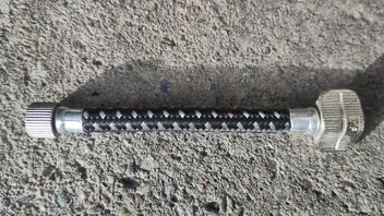 Danke für deine Hinweise. Der Adapter, der dem Flickzeug von BMW beiliegt, entspricht dem mit dem kurzen Schlauch auf deinem Foto, ist aber einfacher ausgestaltet (aus Kunststoff) und nur 5,5cm lang. Funktioniert aber ohne Probleme.