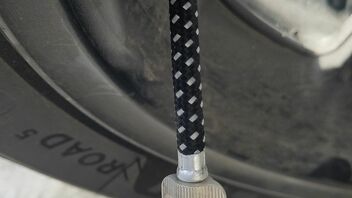 Es ist ein kurzer Schlauch, der runde Anschluss wird auf das Ventil geschraubt und in den Anschluss mit den Flügeln wird die CO2-Patrone eingeschraubt. Das hat funktioniert, alles war dicht und das CO2 ist im Reifen gelandet.