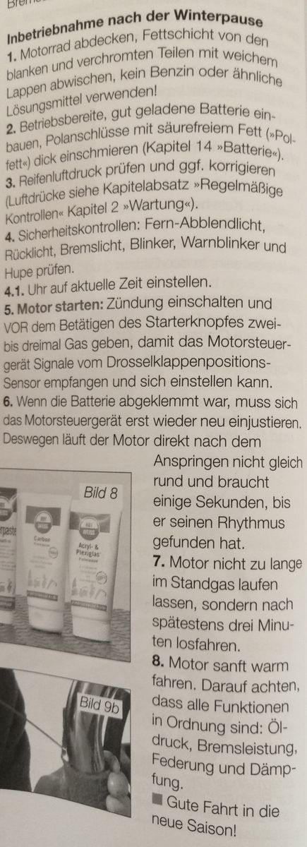 Und bei meiner W800 hatte ich das auch schon mal. Da habe ich, nachdem ich mit Arbeiten an der Elektrik fertig war, den Motor auch gestartet um alle elektrischen Funktionen durchzuschalten. Anschließend den Motor abgestellt und nach ein paar Tagen ist sie auch erst nach mehreren längeren Startversuchen angesprungen. Seitdem startet sie wieder zuverlässig.