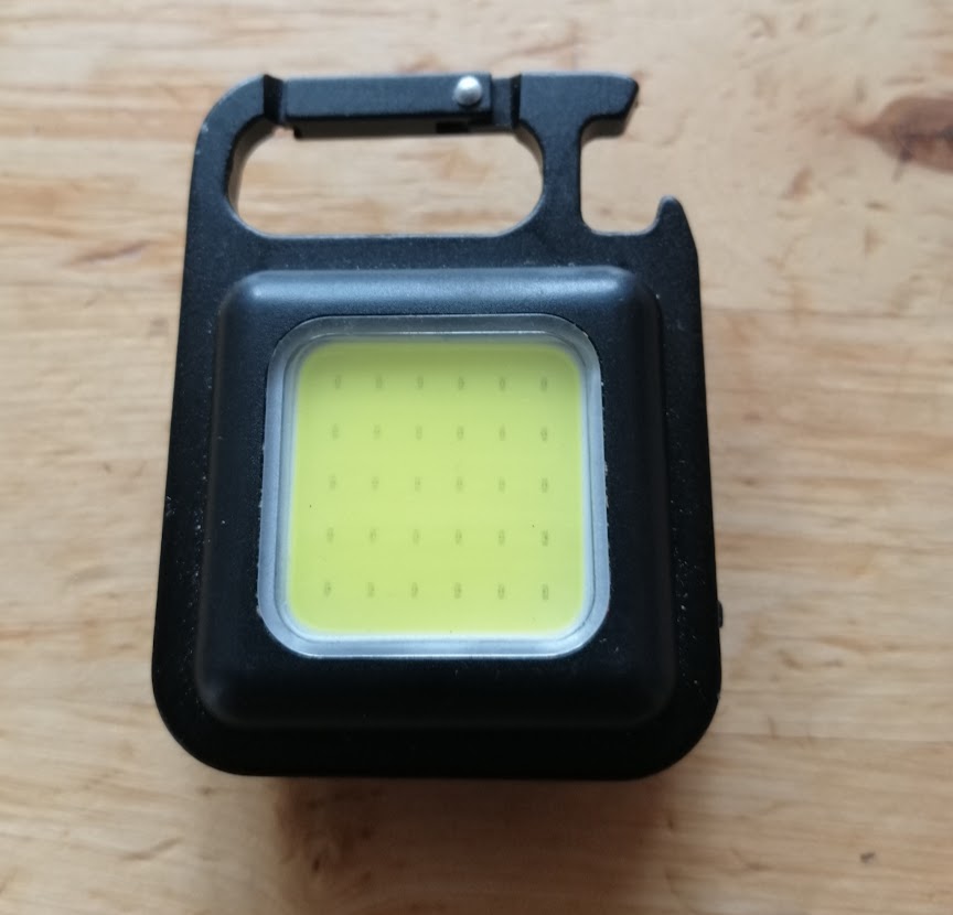 Eine über USB C aufladbare Akkulampe mit Magnet und Flaschenöffner-Karabiner hatte ich noch liegen.