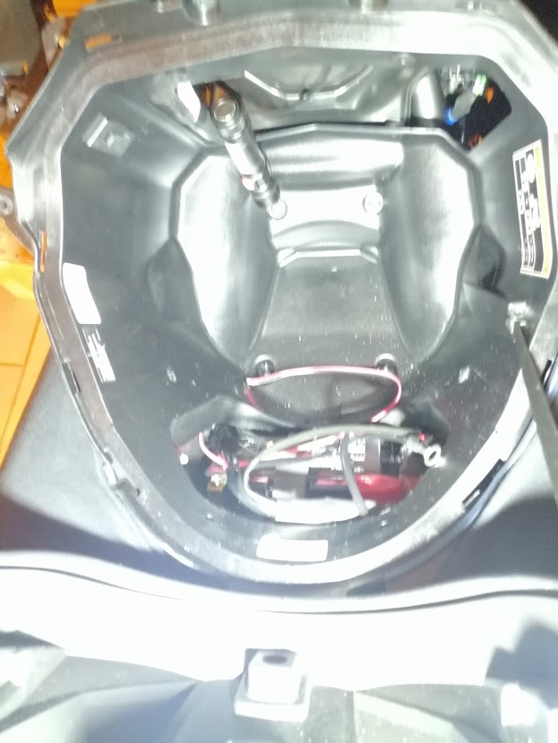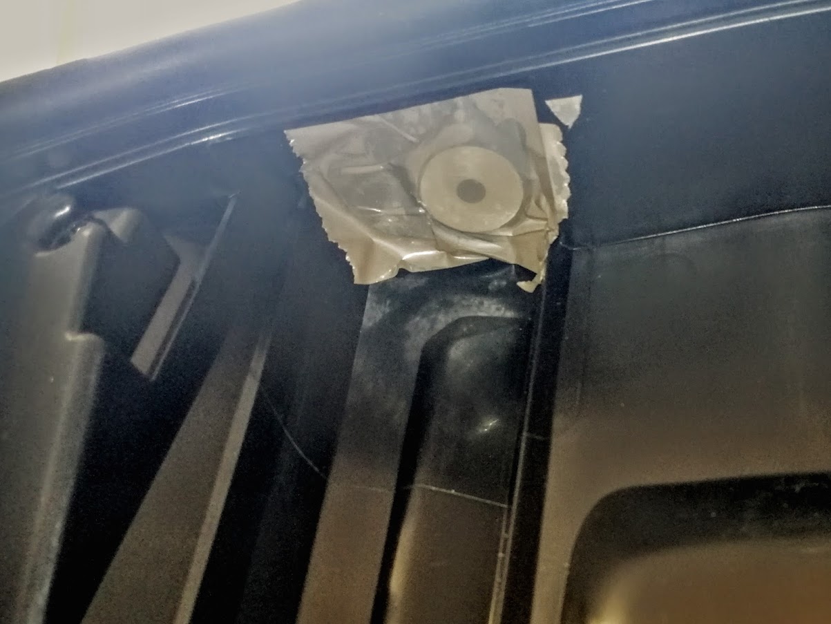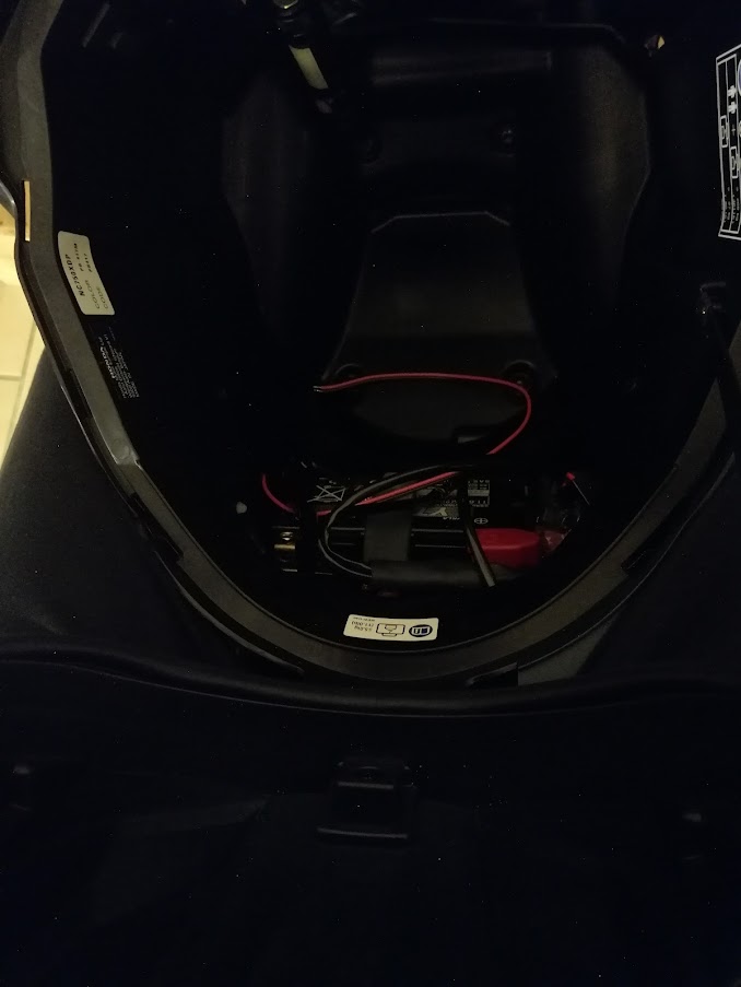 Ein wenig überlegt wo die am besten untergebracht werden kann, also landete sie im Frunk-Deckel oben rechts ( in Fahrtrichtung ).