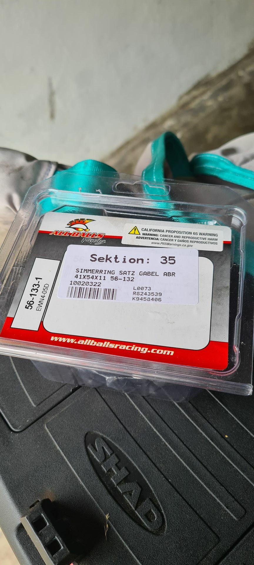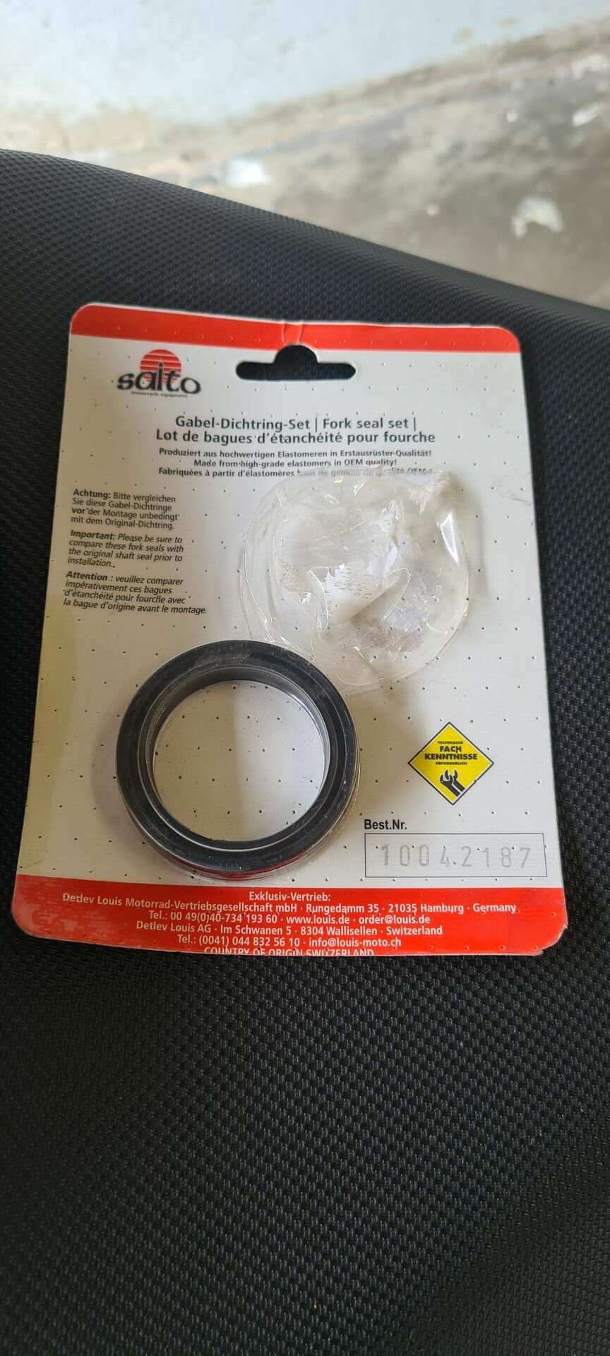 Für alle, die mal die SiRis bei einer 2015er X (oder auch Modelle mit gleicher Gabel) erneuern wollen: Die abgebildeten Dichtringe sind nicht passend. Von der Bemaßung her stimmen diese mit den originalen überein, haben jedoch das Problem, daß die untere Dichtlippe einen zu großen Durchmesser hat. Schiebt man den Siri über das Standrohr, hat der Siri ca. 0,5 mm (geschätzt) Spiel. Zum Glück hatte ich noch verpackte Saito's für meine NTV liegen, die haben zufällig die gleichen Maße. Man muss auch mal Glück haben im Leben. ![]()