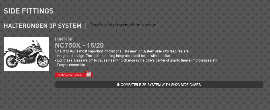 #6 3P bezeichnet einfach das System für die Seitenkoffer, die an 3 Punkten befestigt sind - oben an 2 Punkten aufgehängt und vorne unten am 3. Punkt eingehakt. Das hat also mit dem Topcase nichts zu tun.